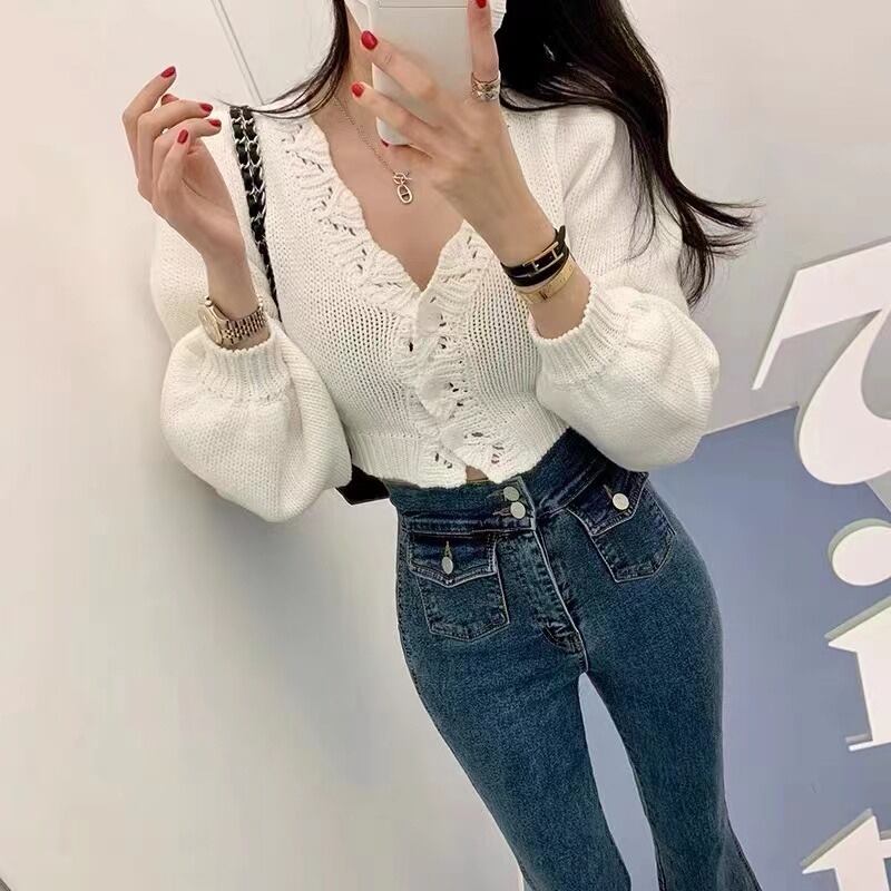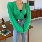 ノミクマ スリムウエスト ショートニット カーディガン 長袖 シングルブレスト Vネック セーター コート 2022年 秋 ニット ロング オータム 秋物 kor40837531006