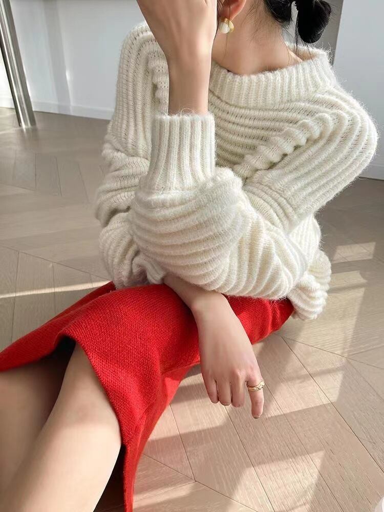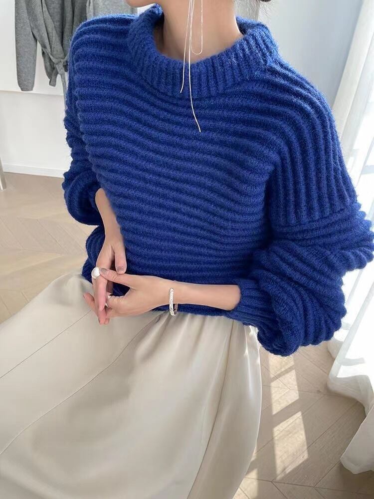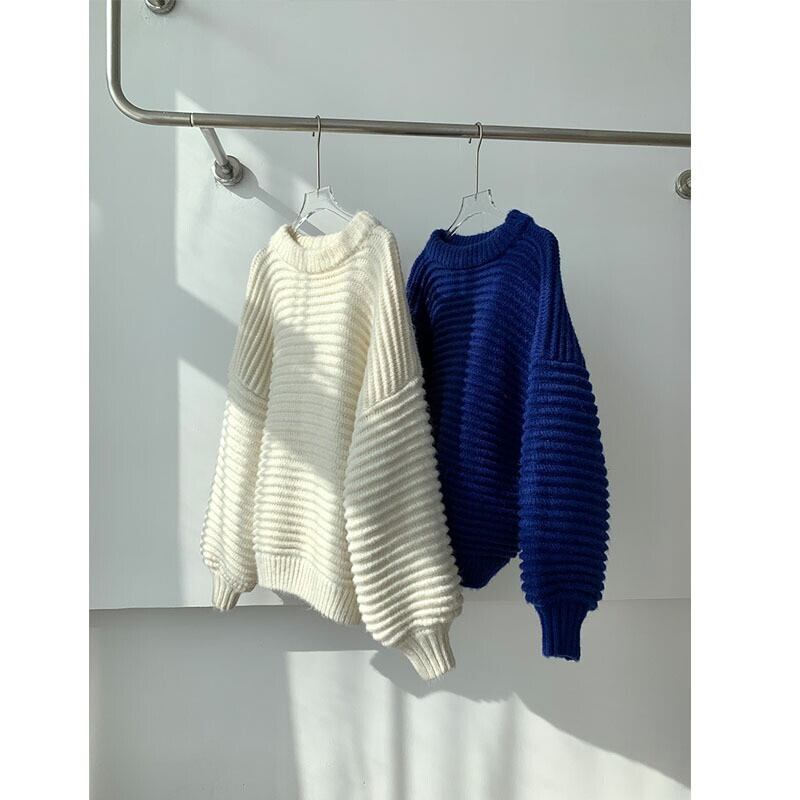 Nomikuma ストライプセーターレディース 2022 秋冬プル因果パフ長袖 O ネックプルオーバーニットトップス ロング オータム 秋物 ウィンター 冬物 Oネック kor64071463170