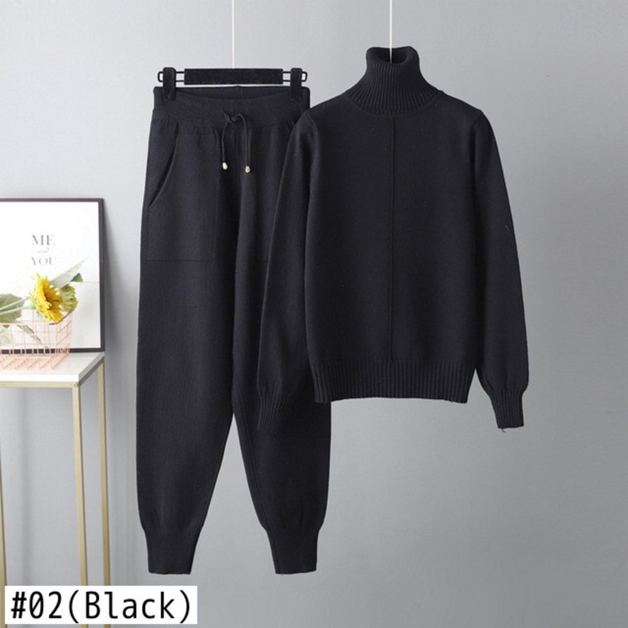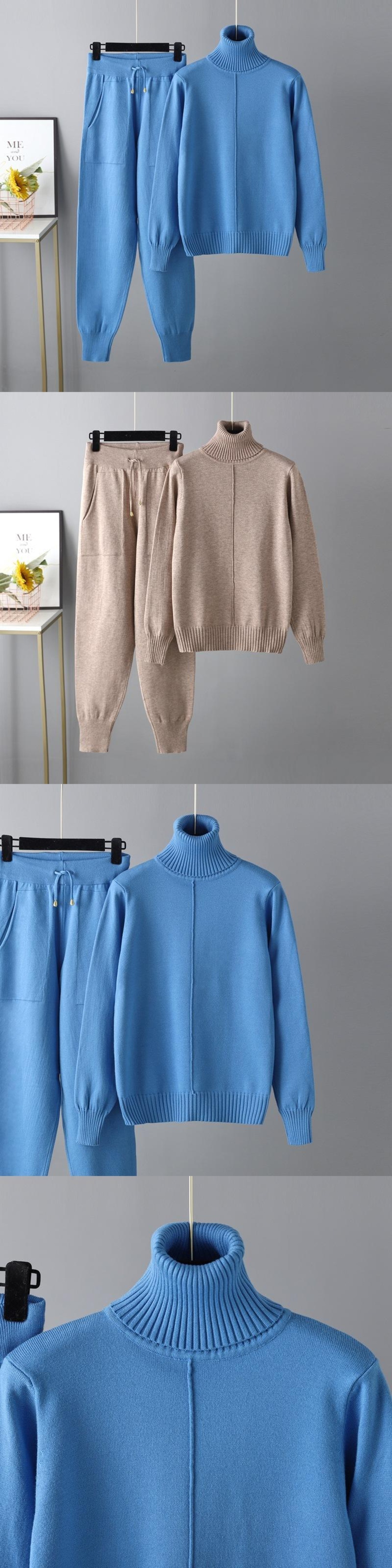 ノミクマスーツ 2022秋冬 タートルネック 無地 セーター ニット風 ハーレムパンツ 2点セット オータム 秋物 ウィンター 冬物 ソリッドカラー kor8037340653