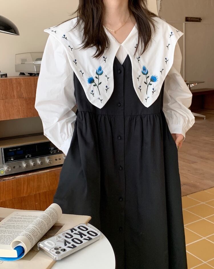 ノミクマ シック 秋 ブラウス 花柄刺繍 ターンダウンカラーシャツ 2022年 パフスリーブ オータム 秋物 kor98282435723