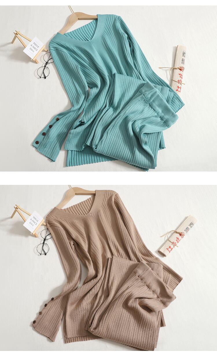 Nomikuma ニットセット女性無地 V ネックスプリットプルオーバーニット + ウエストワイドレッグセーターパンツ 2022 秋冬 オータム 秋物 ウィンター 冬物 Vネック ワイドパンツ ソリッドカラー kor84532948737