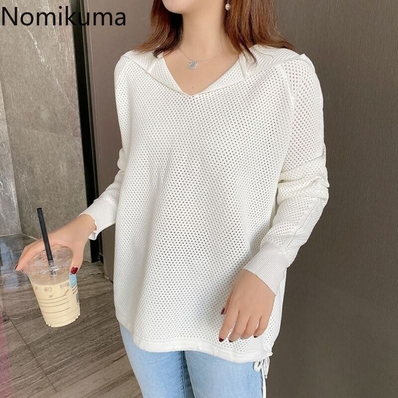 Nomikuma 2021 春中空アウト女性フード付きニットコート因果長袖固体 Swetaer プルオーバージャケット 6F608 ロング スプリング 春物 ソリッドカラー kor74803462627