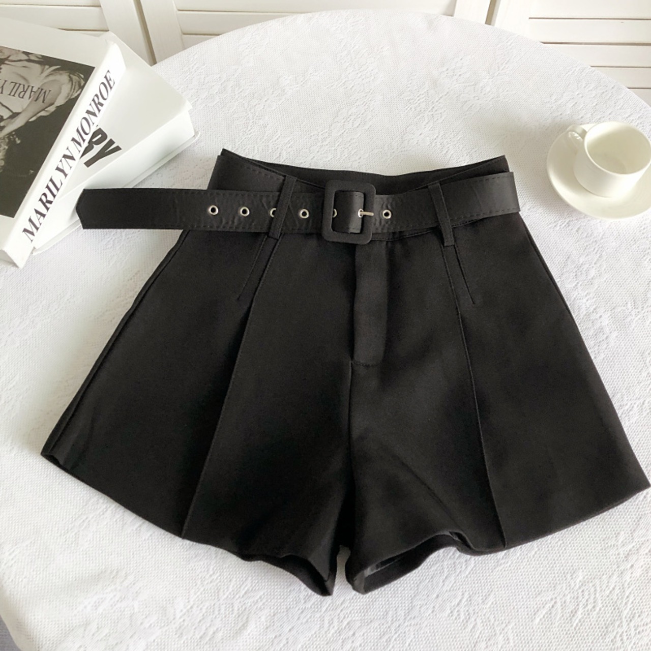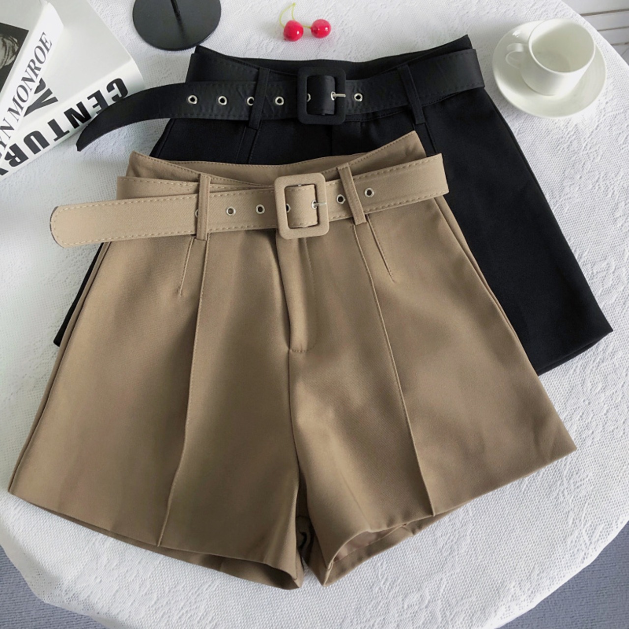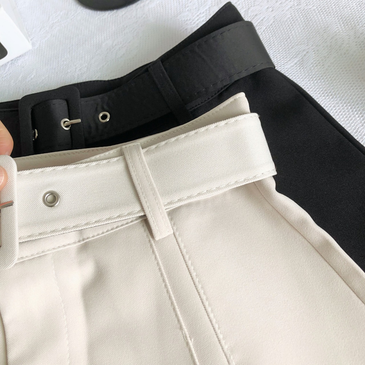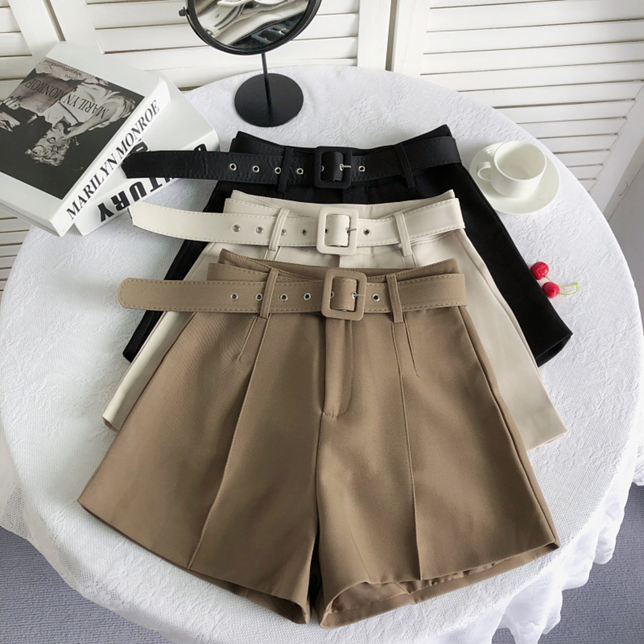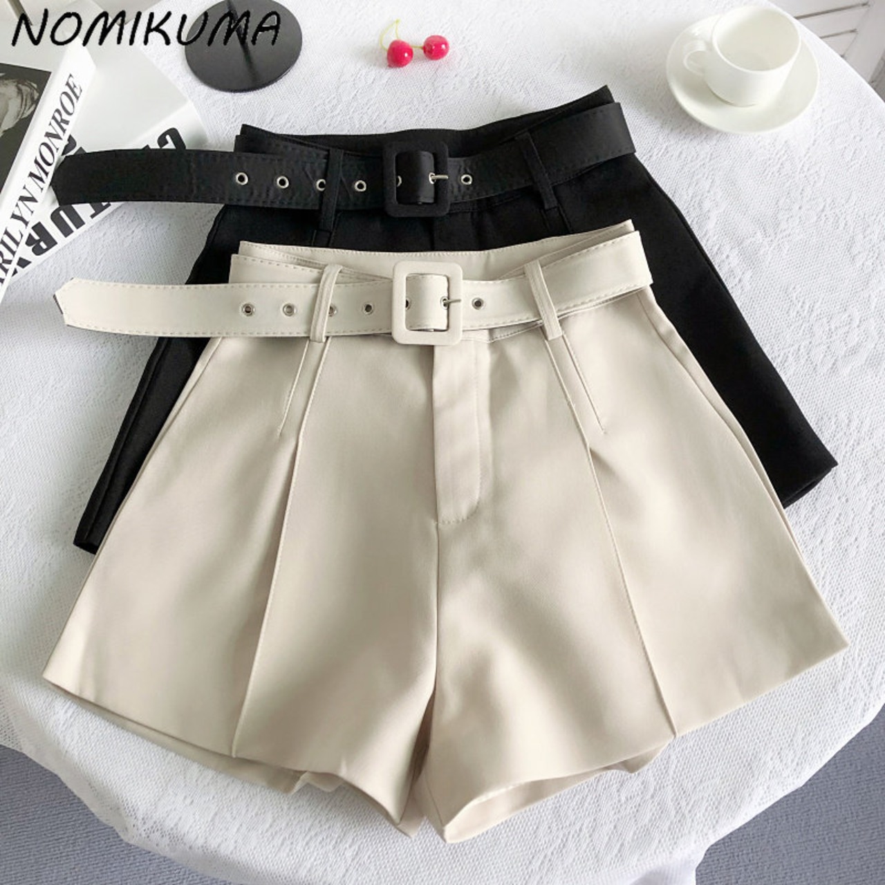 ノミクマ 2022年 秋 カジュアル ウエスト レディース ショーツ ベルト付き 無地 スーツ ワイドレッグ ショートボトム オータム 秋物 ハーネス ブルマー ワイドパンツ ソリッドカラー kor20609606471
