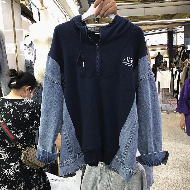 Nomikuma 因果パッチワークフード付き徳民スウェットシャツ女性秋長袖コントラストカラーパーカー 2022 トップジャンパー ロング オータム 秋物 kor20090175414