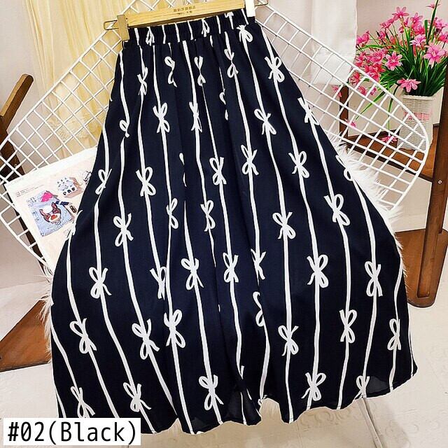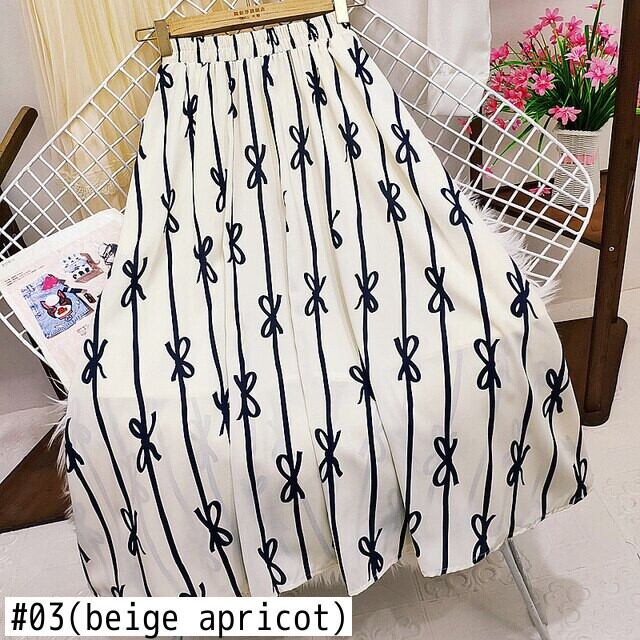 Nomikuma シックなちょう結びプリントスカート女性弾性ウエスト因果ポケットボトムススタイルスカート段 Faldas リボン エラスティック 伸縮 kor34434044387