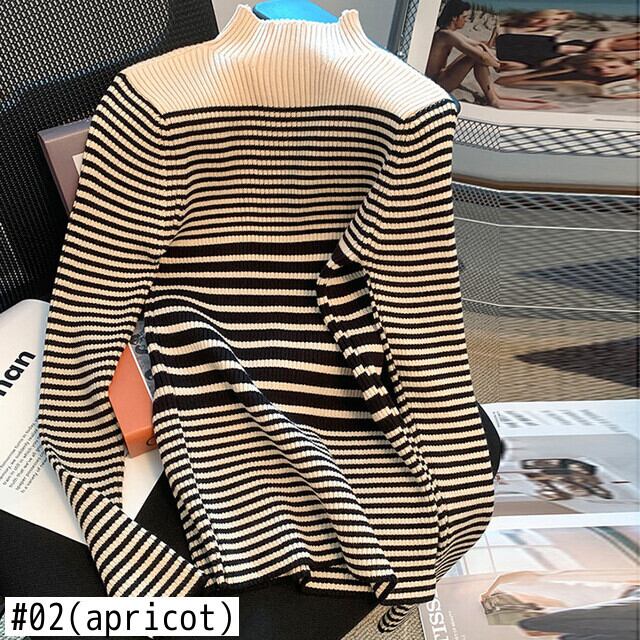 Nomikuma ハーフネックセーター レディース スリム 2022 秋冬 ベーシックニット ヒットカラー ストライプ ニット プルオーバー オータム 秋物 ウィンター 冬物 kor91862489577