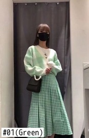 ノミクマ Vネック チェック ニット カーディガン コート カジュアル 長袖 2022年 秋 セーター ショート ニット アウター トップス ロング オータム 秋物 kor50482583245
