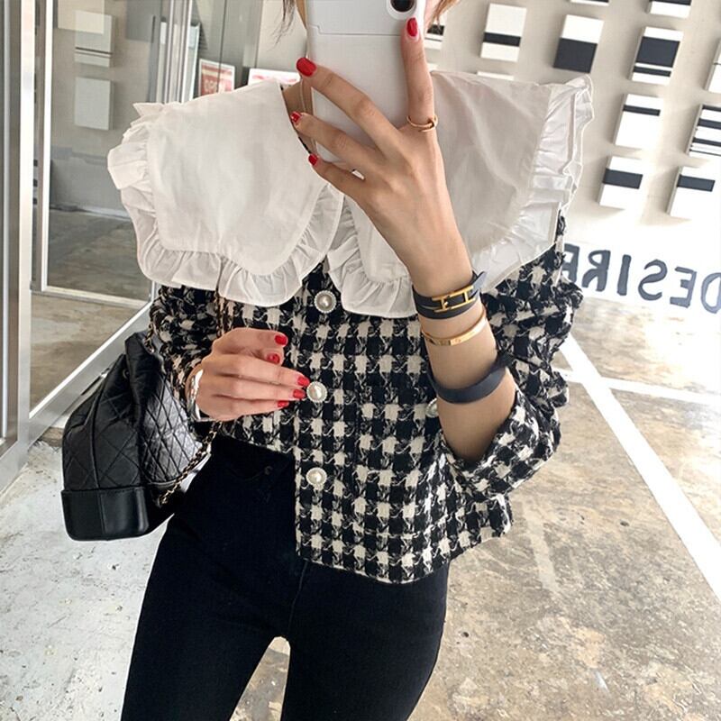 Nomikuma 女性ショートチェック柄コートヒットカラーピーターパンカラー生き抜く 2021 秋のシックな長袖ジャケット 6X535 ロング オータム 秋物 kor35756611047