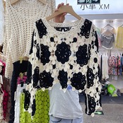 ノミクマ コントラストカラー ホック くり抜きセーター プルオーバー カジュアル 長袖 Oネック ニット 2022秋 ショート プルオーバー ロング オータム 秋物 kor8992150651