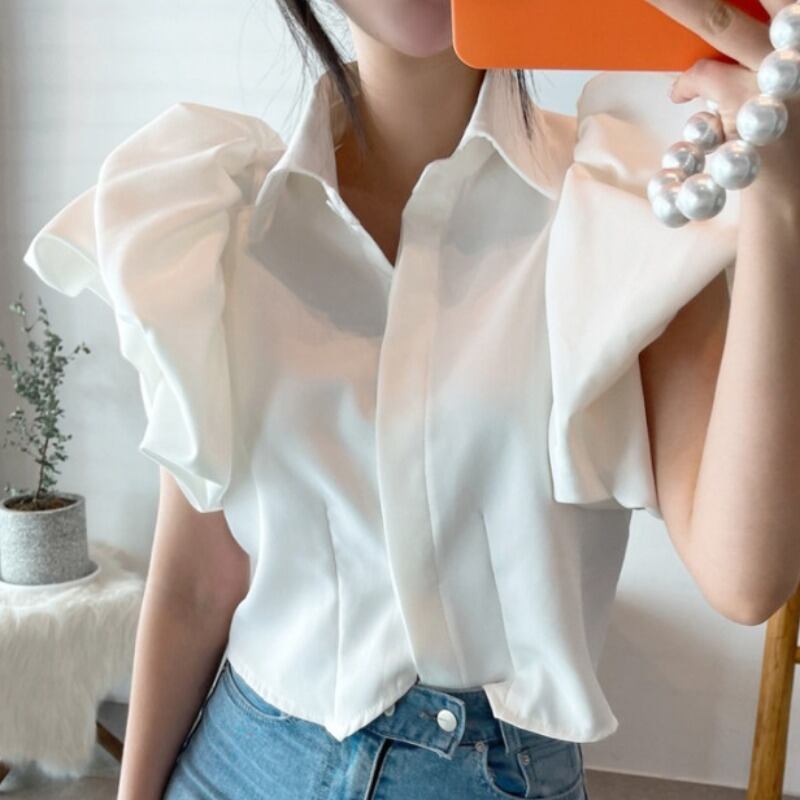 Nomikuma シックなパフスリーブ女性ブラウスターンダウンカラーシャツ 2021 夏デモーダ 6H648 サマー 夏物 kor1105815462