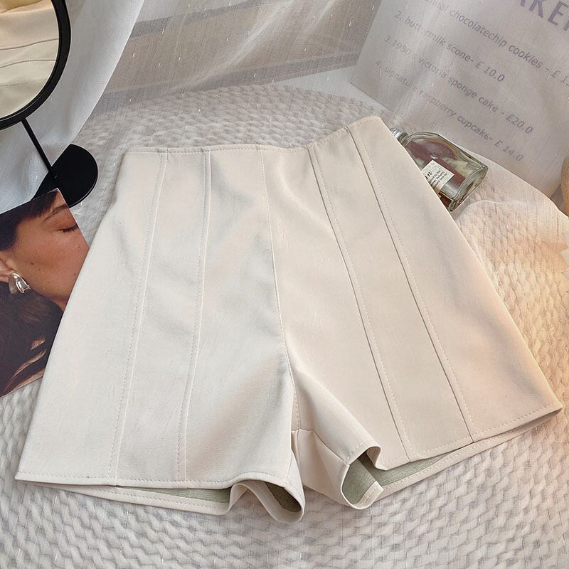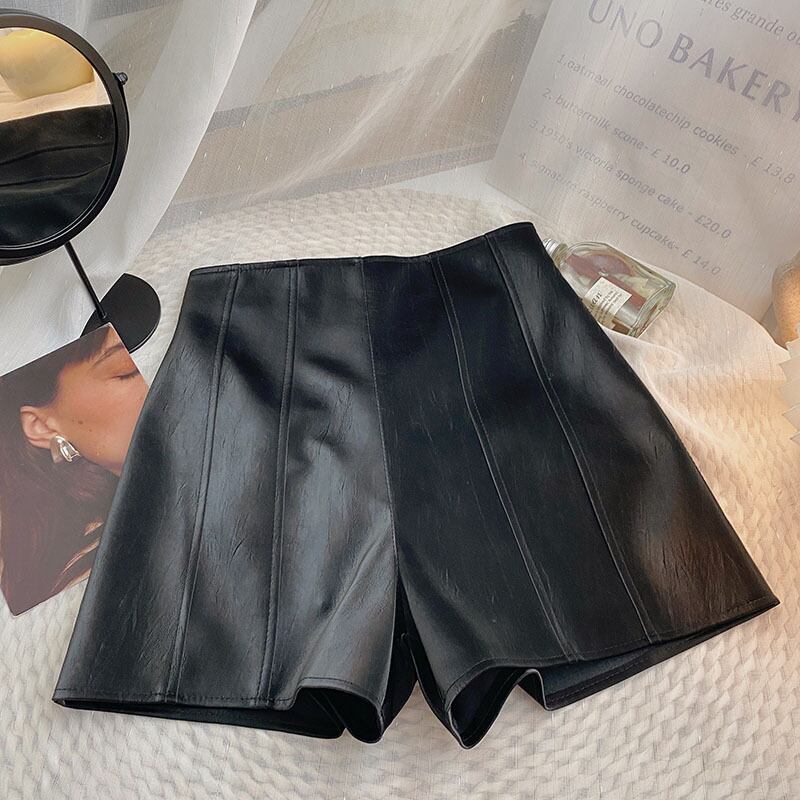 Nomikuma PU レザーウエスト女性ショーツ 2022 秋冬ボトムススタイルワイドレッグショート Feminimos オータム 秋物 ウィンター 冬物 ブルマー ワイドパンツ kor4067848228