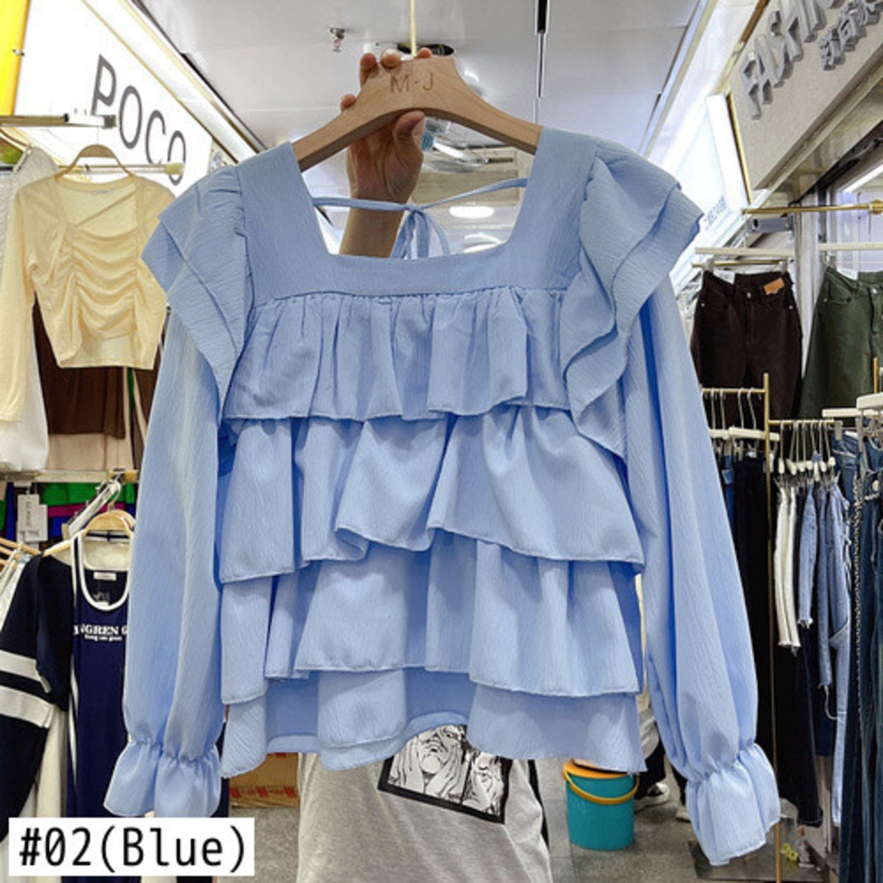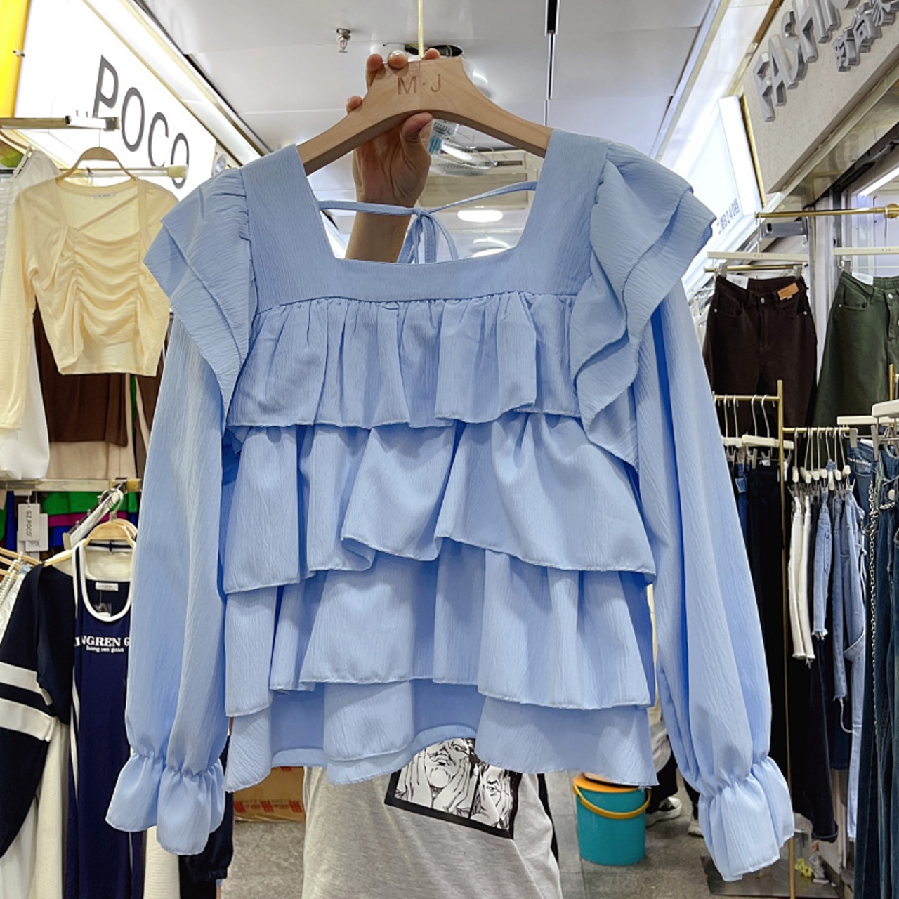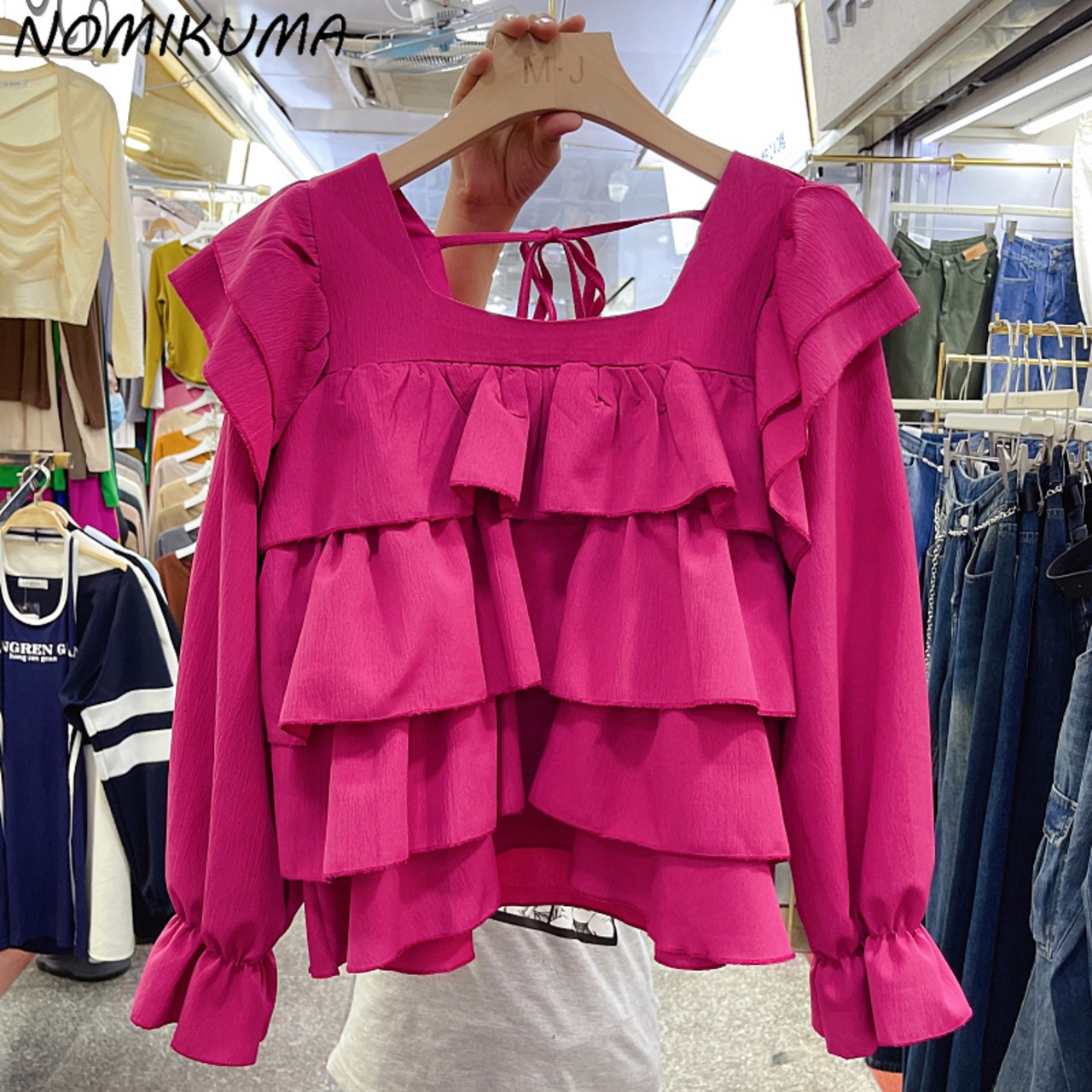 Nomikuma シックなスクエアカラーフリルブラウス女性 2022 秋フレア長袖シャツ因果甘いプルオーバートップ ロング 大人ガーリー スウィート キュート カジュアル オータム 秋物 スクウェア kor99424145811