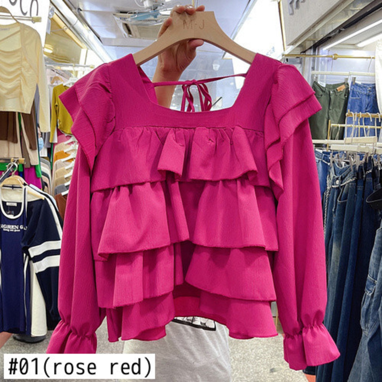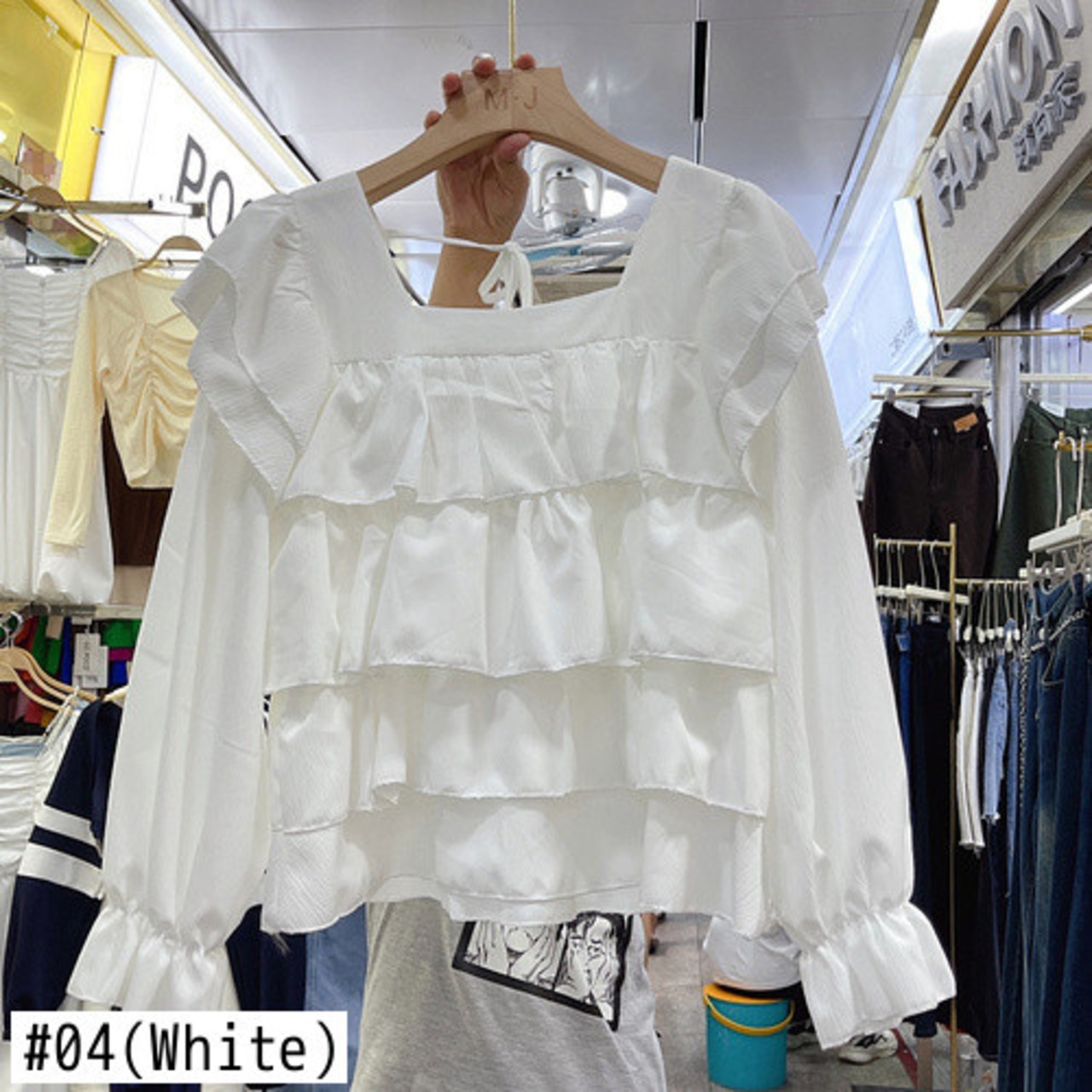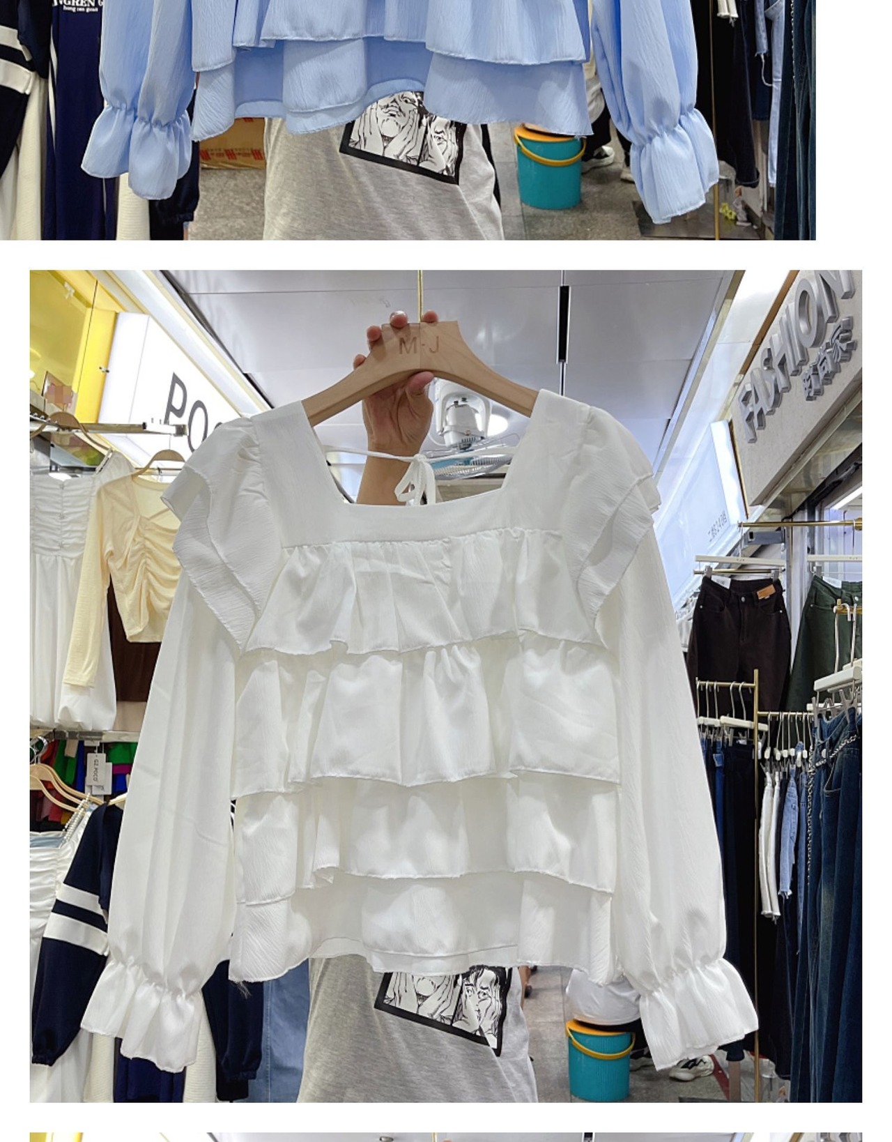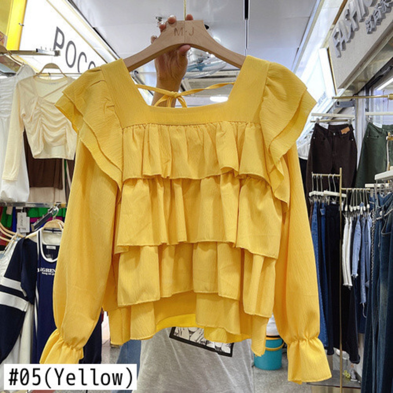 Nomikuma シックなスクエアカラーフリルブラウス女性 2022 秋フレア長袖シャツ因果甘いプルオーバートップ ロング 大人ガーリー スウィート キュート カジュアル オータム 秋物 スクウェア kor99424145811