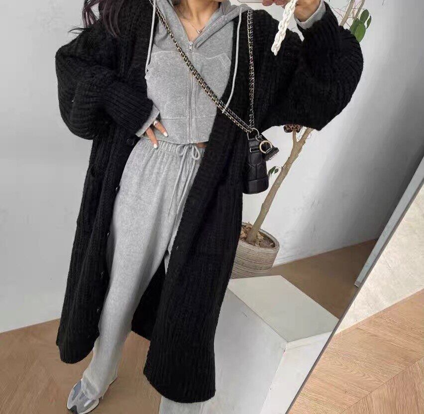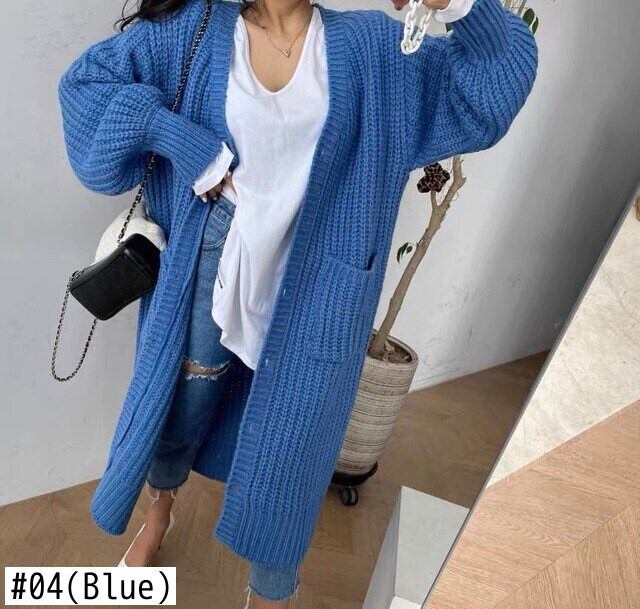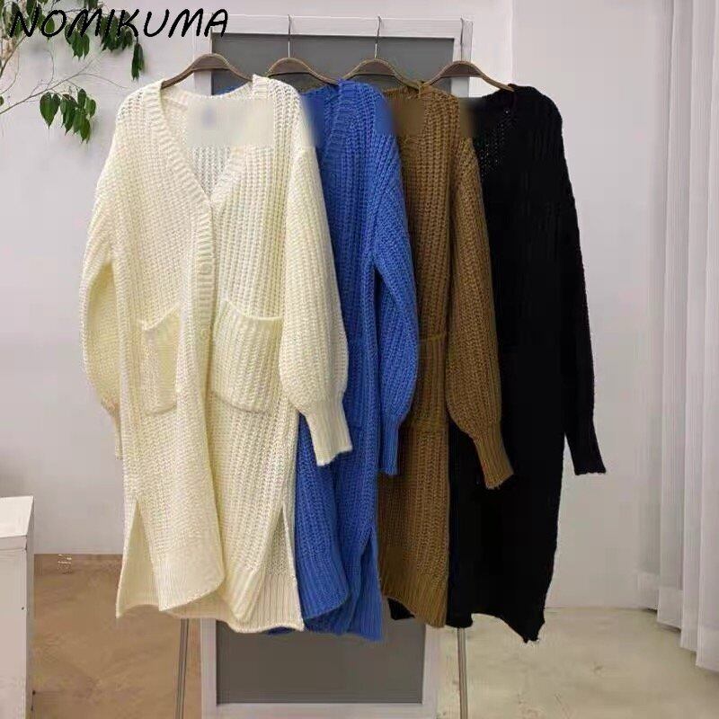 ノミクマ秋冬カジュアルポケットミディアムロングニットカーディガン2022無地ロングスリーブVネックセーターコート オータム 秋物 ウィンター 冬物 ソリッドカラー kor20390289910