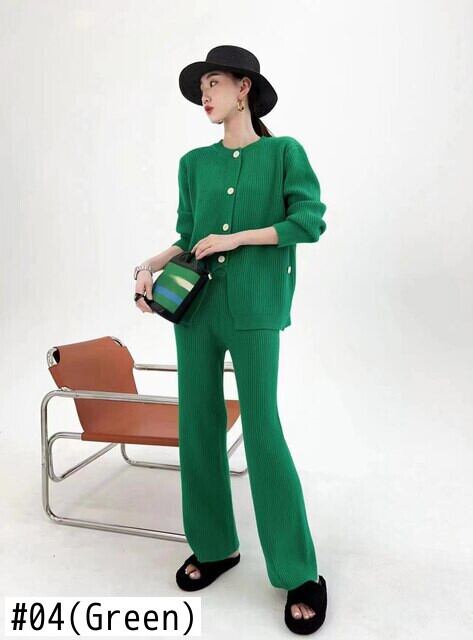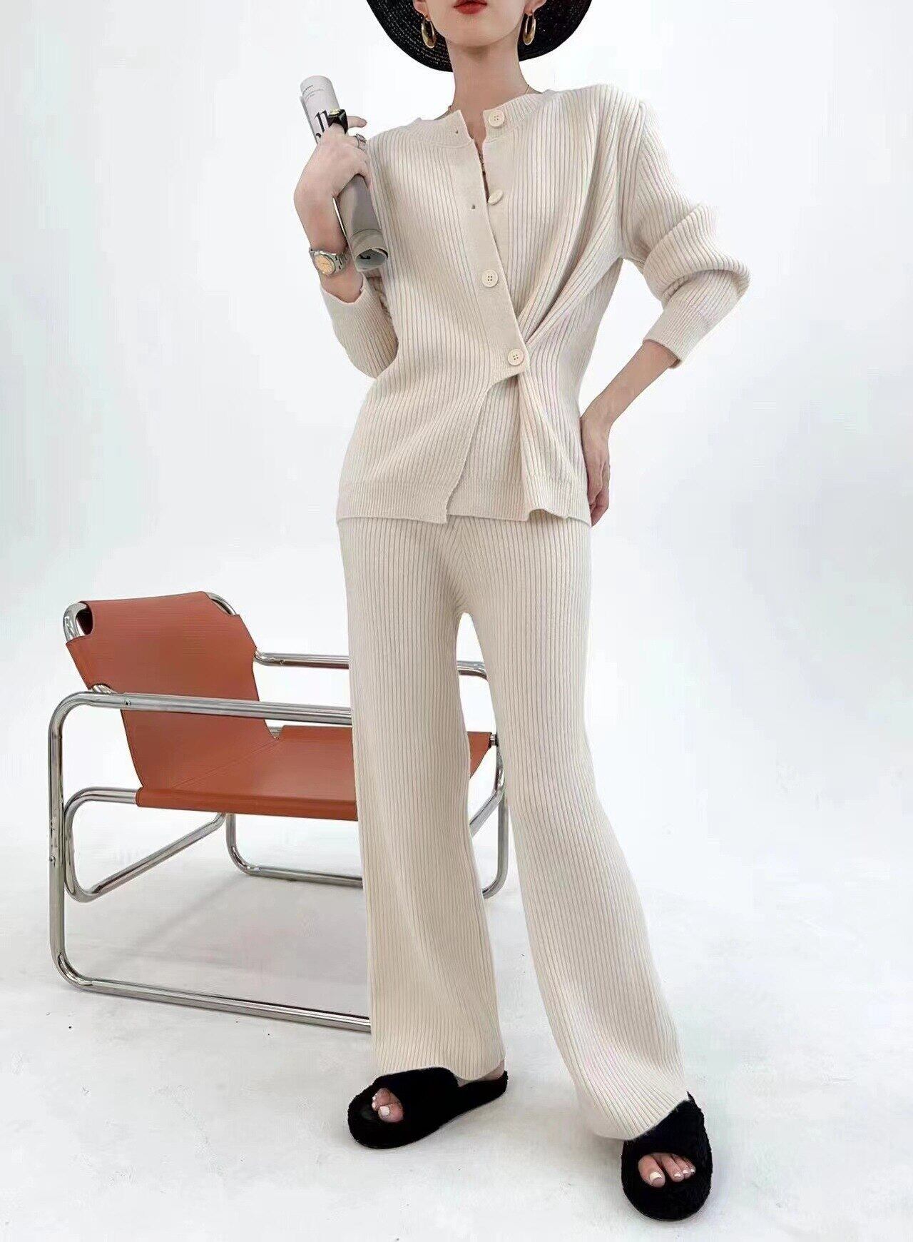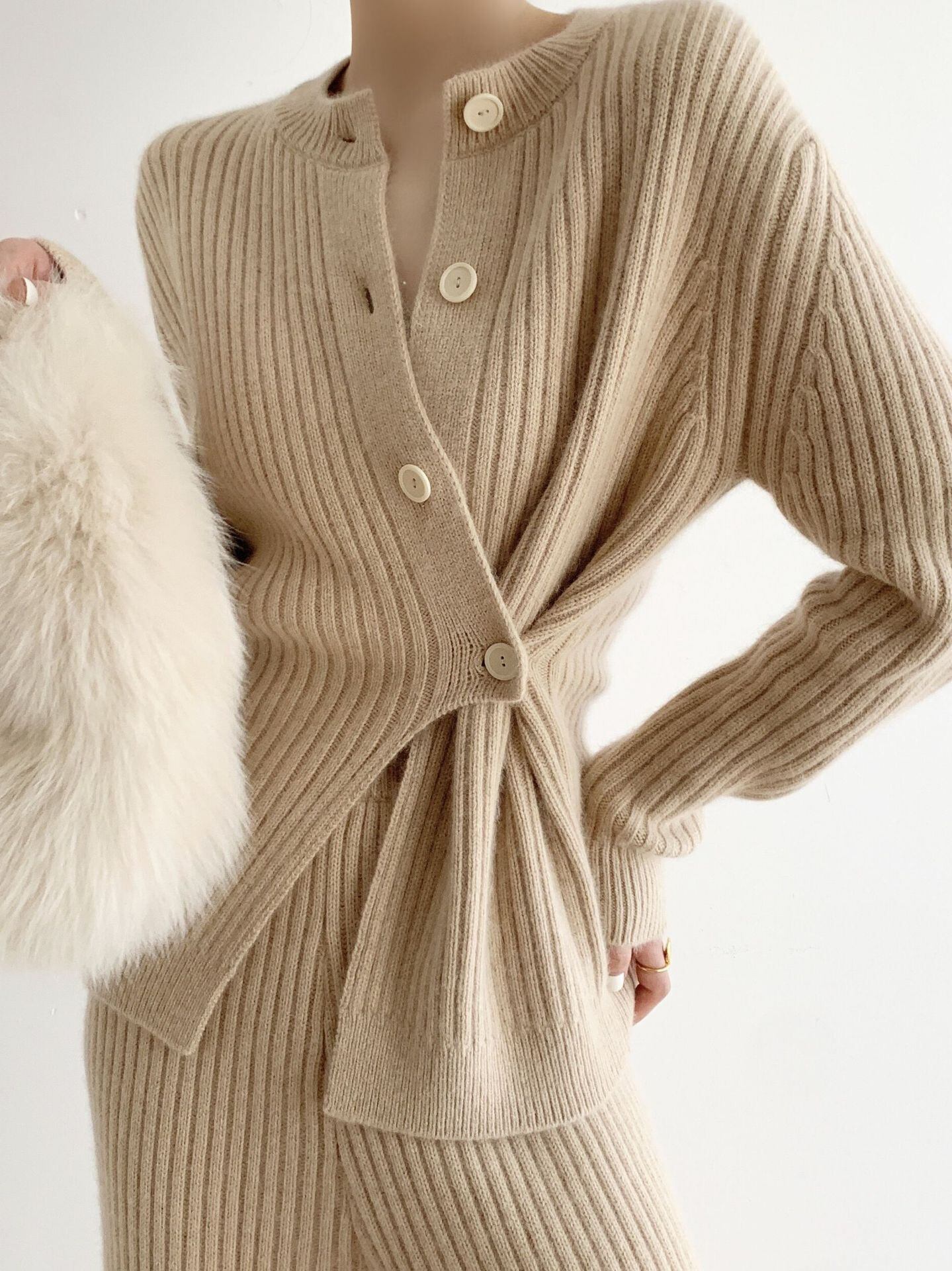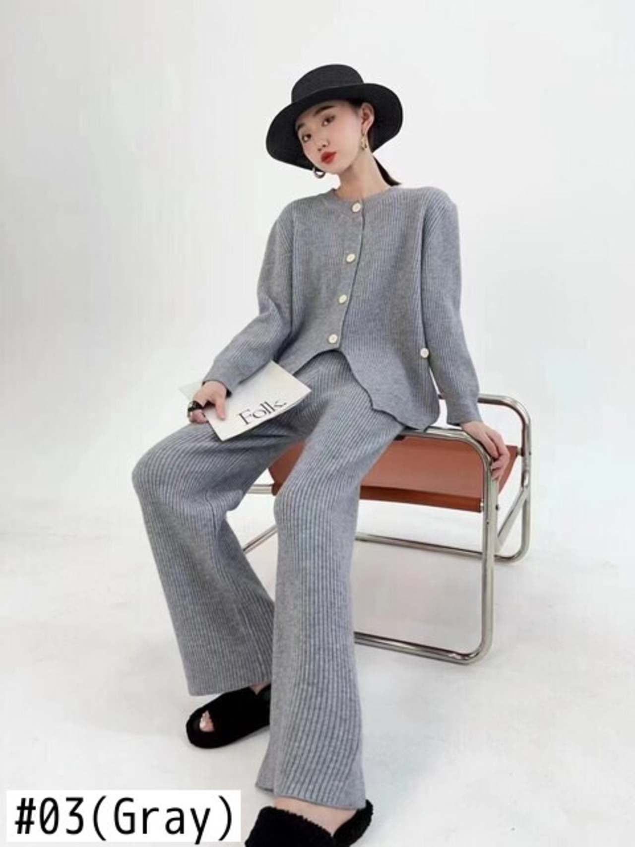 ノミクマ 2022秋冬 ニットコーデ シングルブレスト セーターカーディガン+ウエストワイドレッグパンツ 2点セット オータム 秋物 ウィンター 冬物 ワイドパンツ kor70280229595
