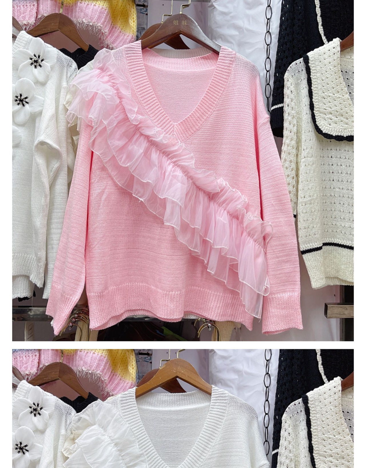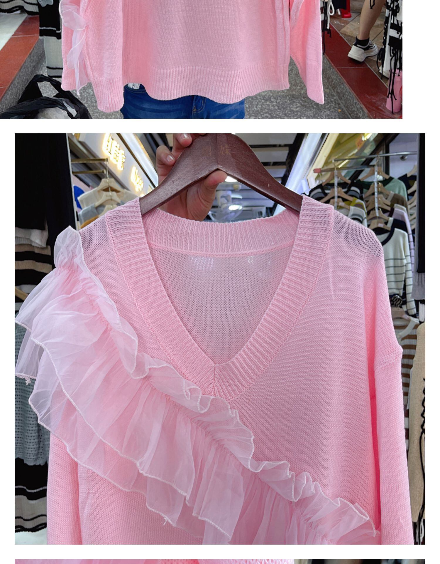 ノミクマ スウィート シフォン フリル Vネック プルオーバー セーター カジュアル 秋 長袖 ニットトップス 2022年 プル ロング 大人ガーリー キュート オータム 秋物 kor85056771069