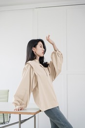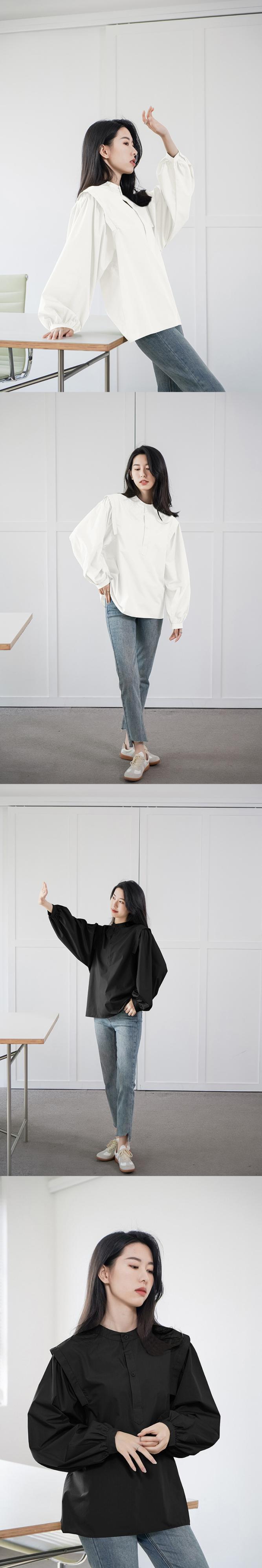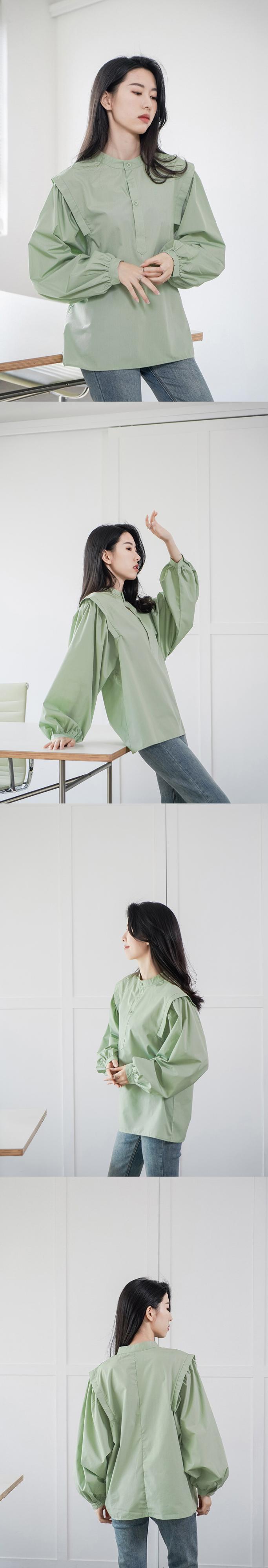 Nomikuma パッチワークランタンスリーブ秋ブラウストップスシングルブレストスタンドネック女性シャツ 2022 トップ オータム 秋物 kor37510485088