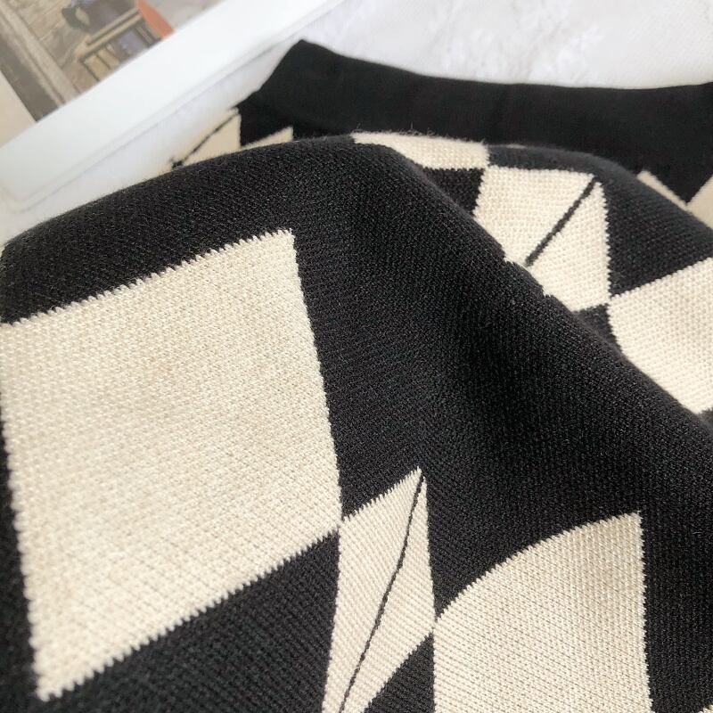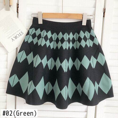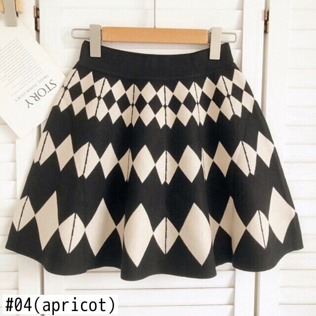 Nomikuma ウエスト ヒット カラー アーガイル セーター スカート女性 2022 秋冬因果 A ライン ミニ ニット スカート オータム 秋物 ウィンター 冬物 Aライン kor67107454381