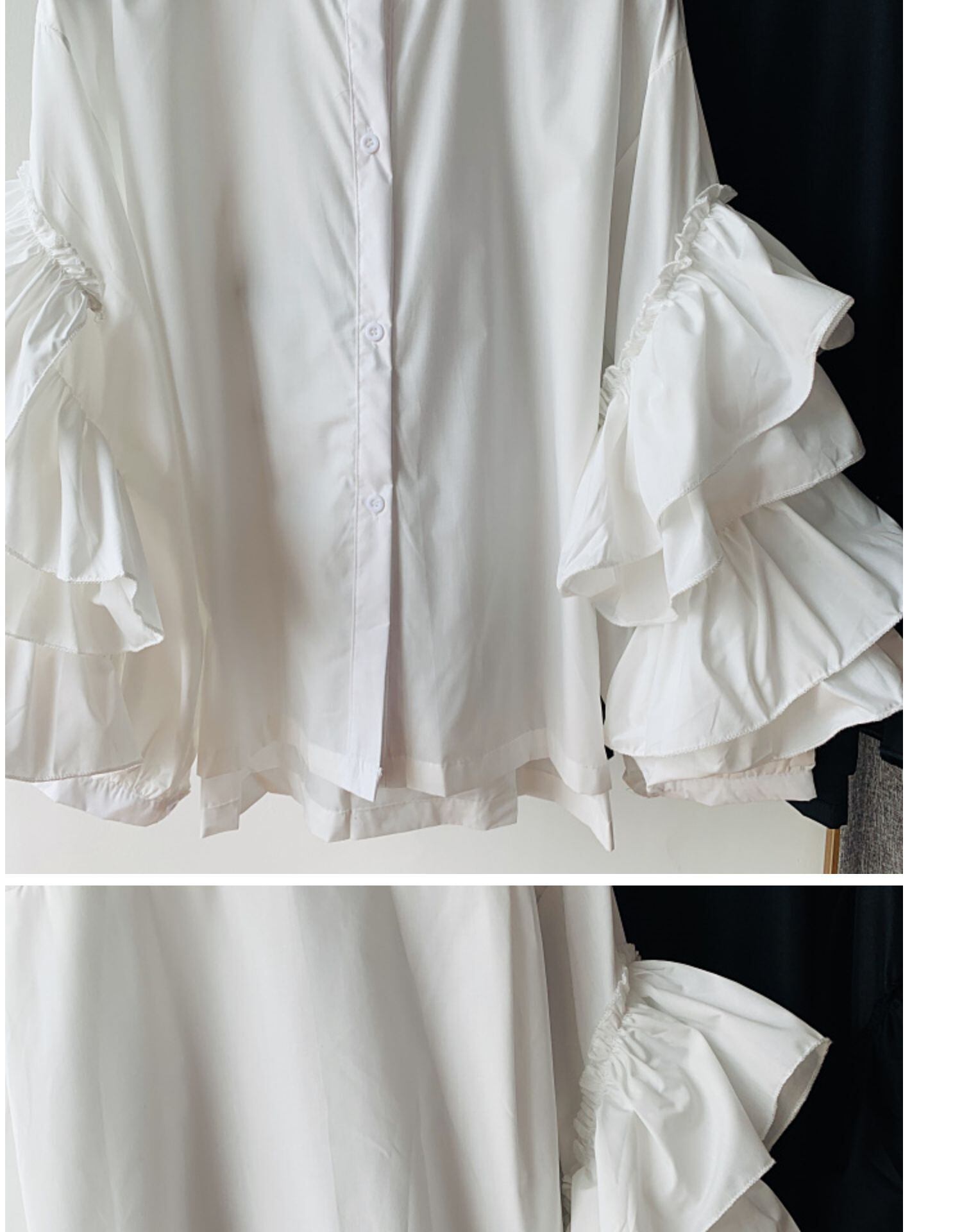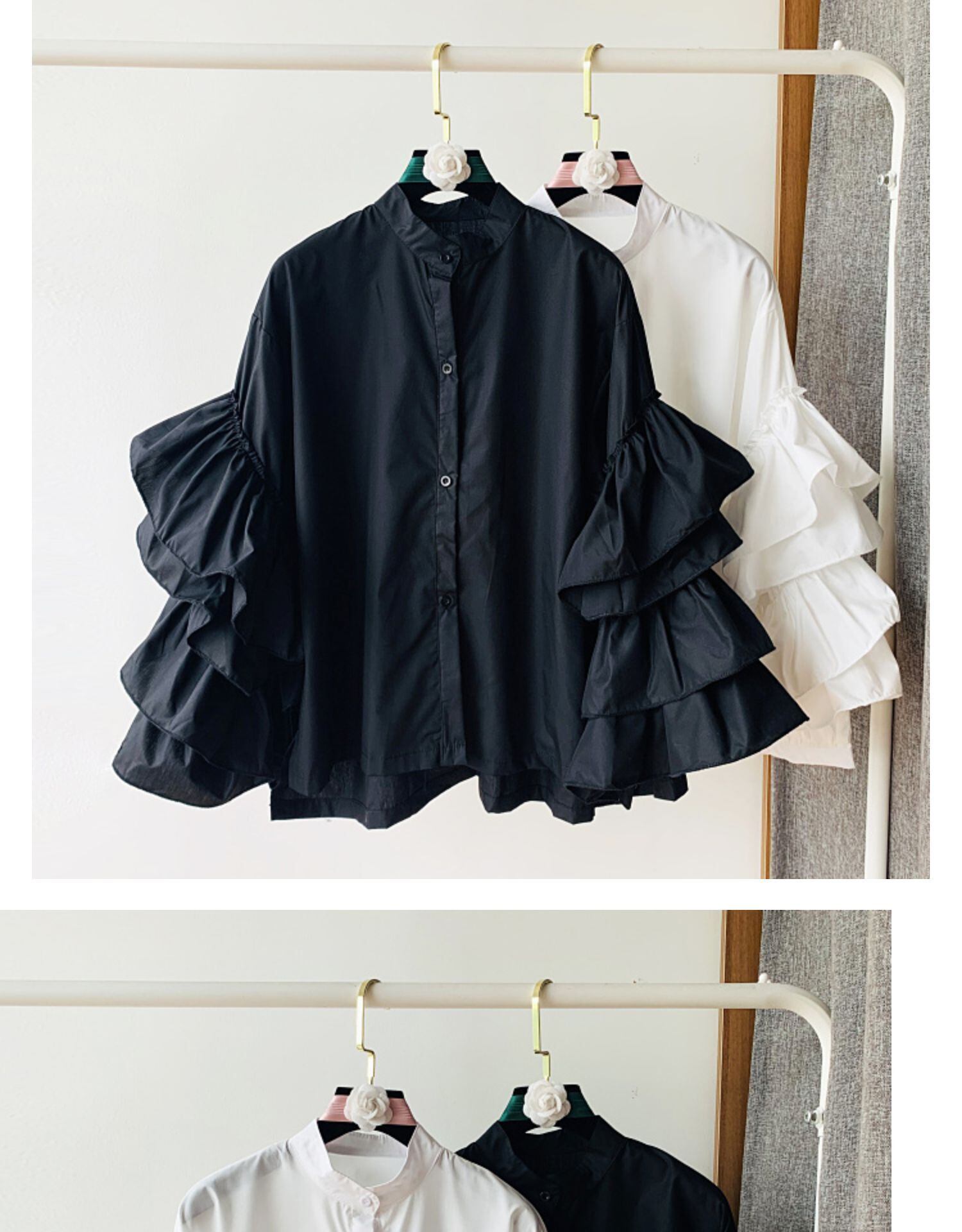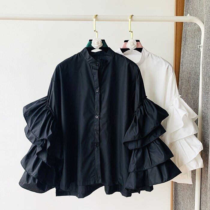 Nomikuma スウィート フリル花びらスリーブ ブラウス シャツ女性 2022 春秋トップス シングル ブレスト O ネック スプリング 春物 オータム 秋物 Oネック kor49234597141