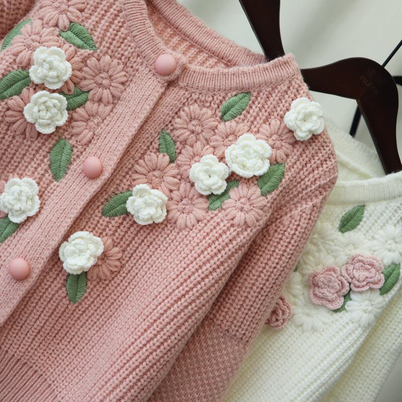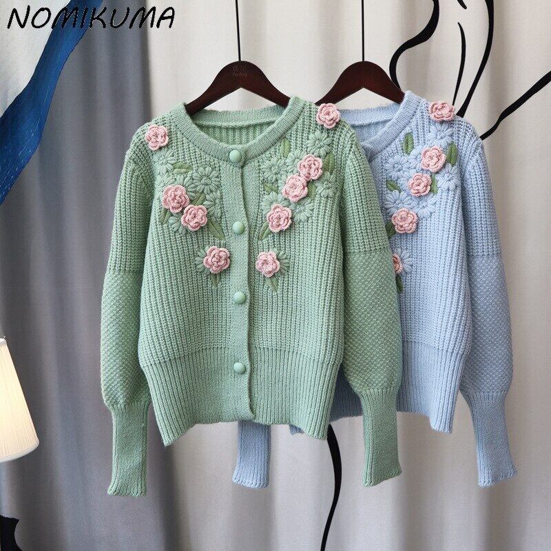 Nomikuma 花ニットカーディガン女性 2022 秋冬ニット因果長袖 O ネックセーターコートプル ロング オータム 秋物 ウィンター 冬物 Oネック フラワーデザイン kor10579820303