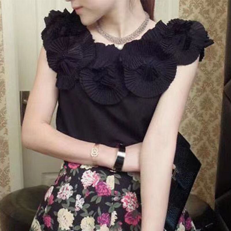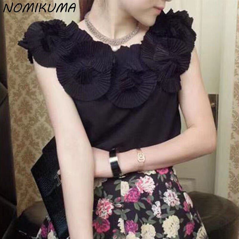 Nomikuma シックな 3D 花 V ネックシャツ無地ノースリーブ 2022 Sumemr 女性トップス Vネック ソリッドカラー フラワーデザイン kor67196126381