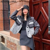 レースパッチワークブレザーコート因果ブレザー女性 2022 長袖ノッチカラースーツジャケット 6N748 ロング kor43050781122