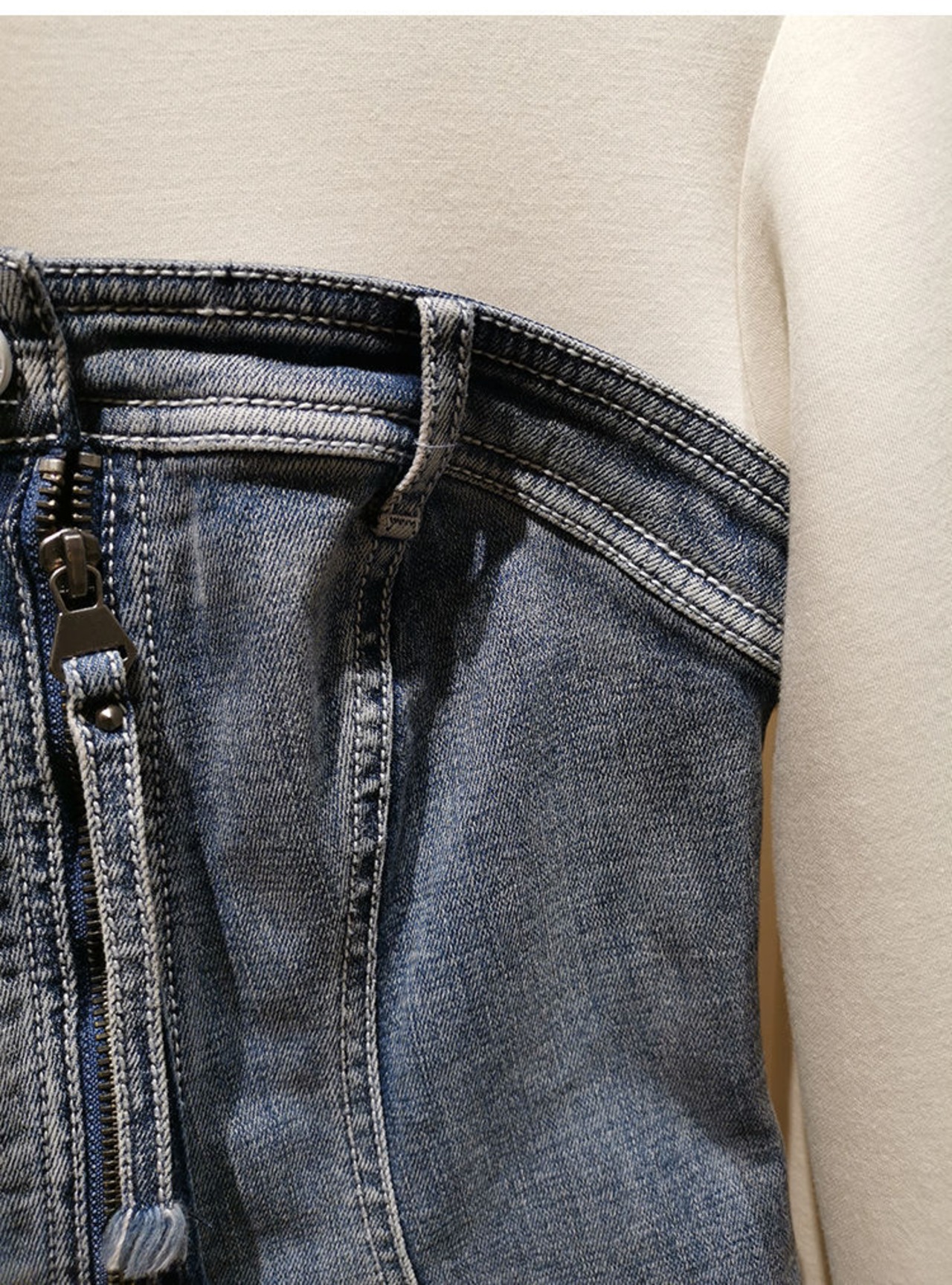 Nomikuma Demin パッチワークプルオーバースペースコットンプルオーバースウェットシャツ 2022 秋の女性ジャンパー因果 O ネックパーカートップ オータム 秋物 Oネック kor1660551129