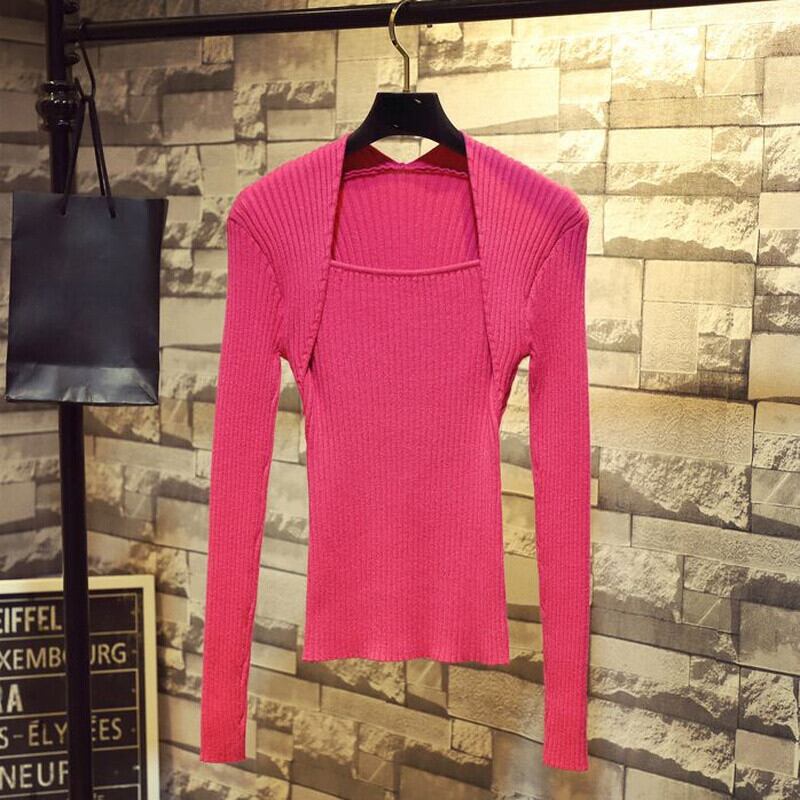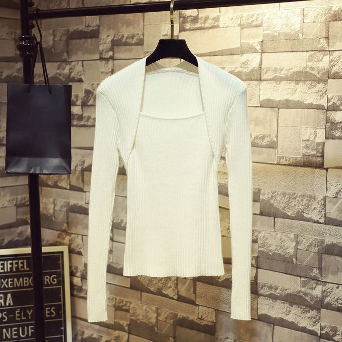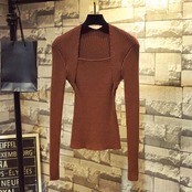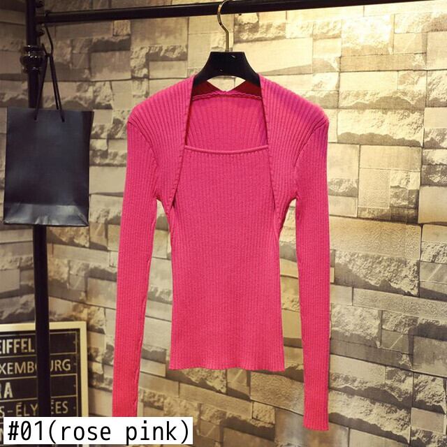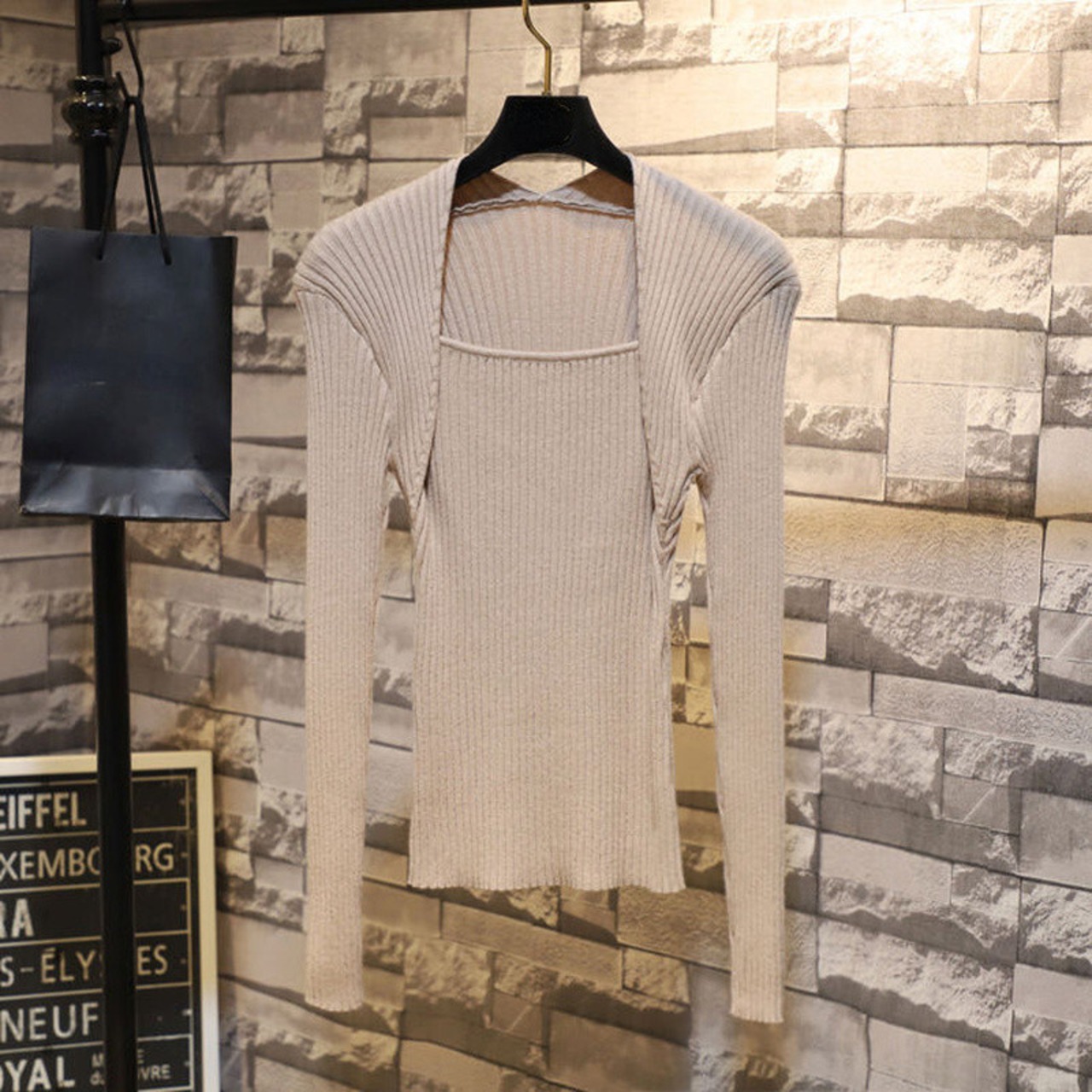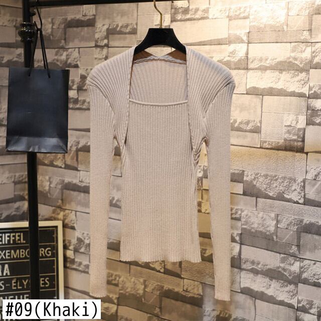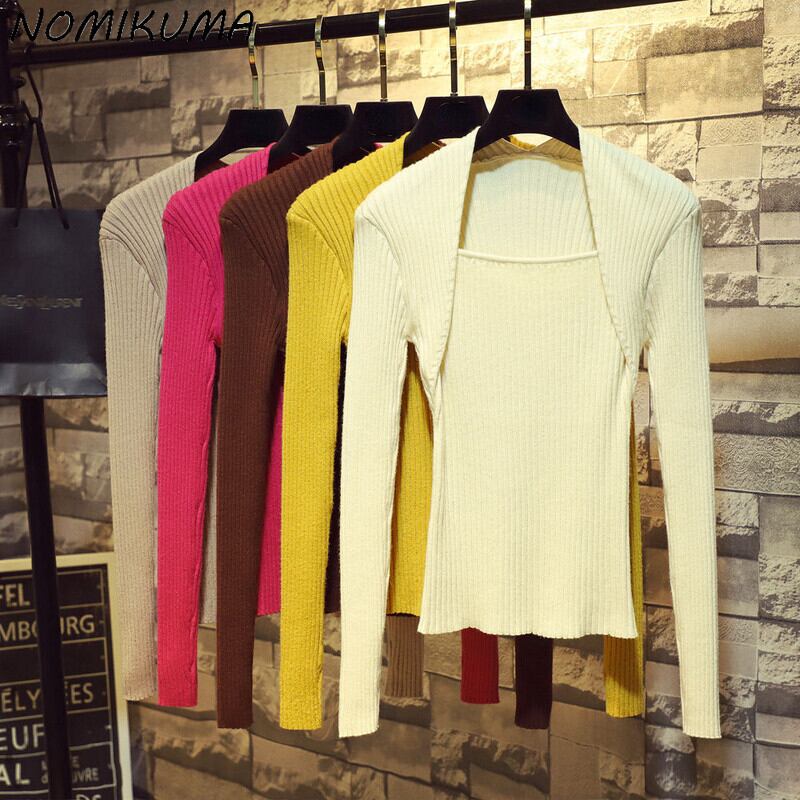 Nomikuma 秋冬フェイク二枚ニットスクエアカラーロングスリーブスリムベーシックセーター女性ニットトップス 長袖 オータム 秋物 ウィンター 冬物 スクウェア kor76771378698
