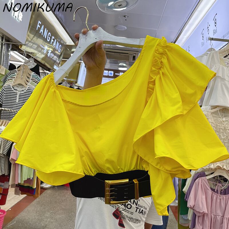 Nomikuma セクシーなストラップレスのスキューカラーブラウス女性の夏のベルトスリムウエストショートシャツ 2022 トップス サマー 夏物 ハーネス kor87240306821