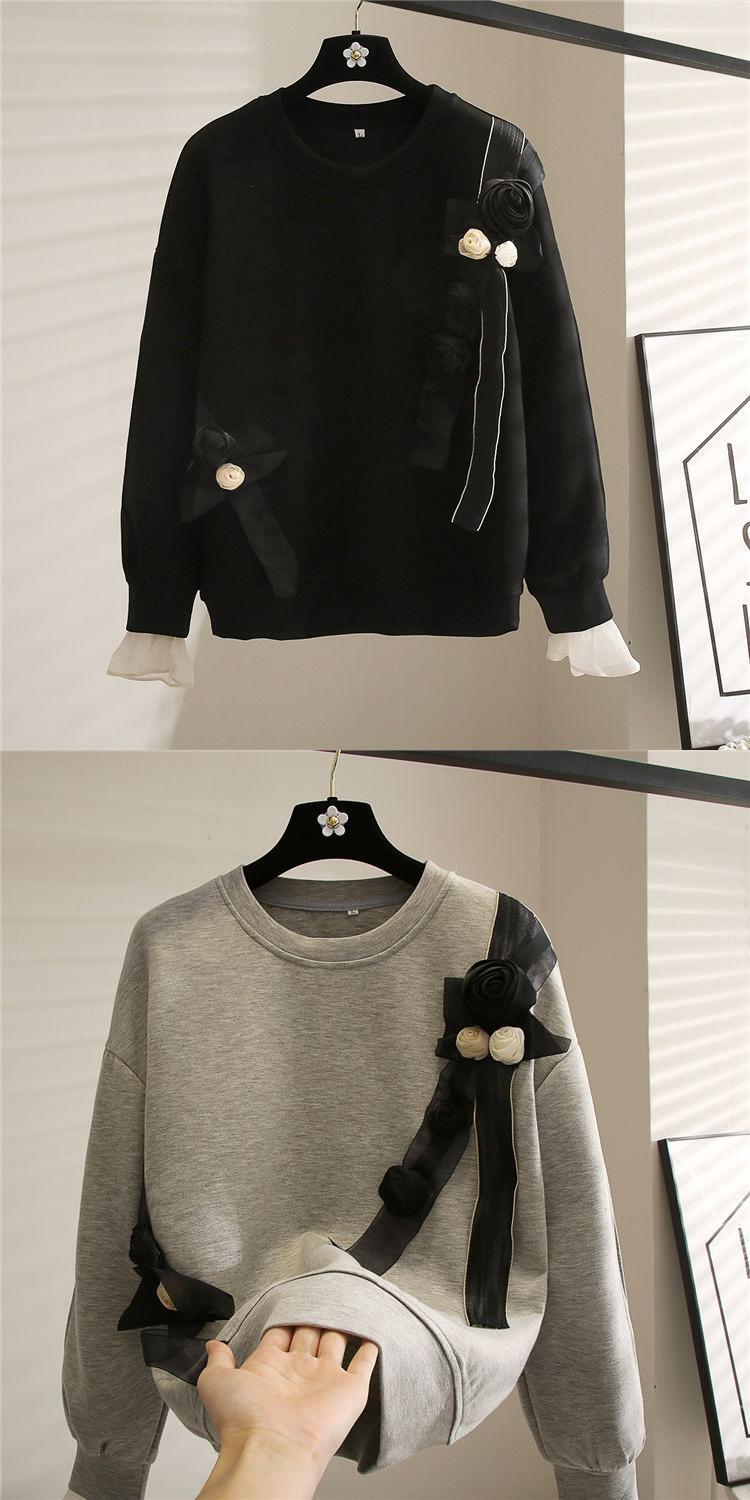 ノミクマ 2022 パーカー メッシュ 花柄 パッチワーク スウェット レディース 長袖 Oネック プルオーバー トップス ジャンパー ロング フラワーデザイン kor35748957861