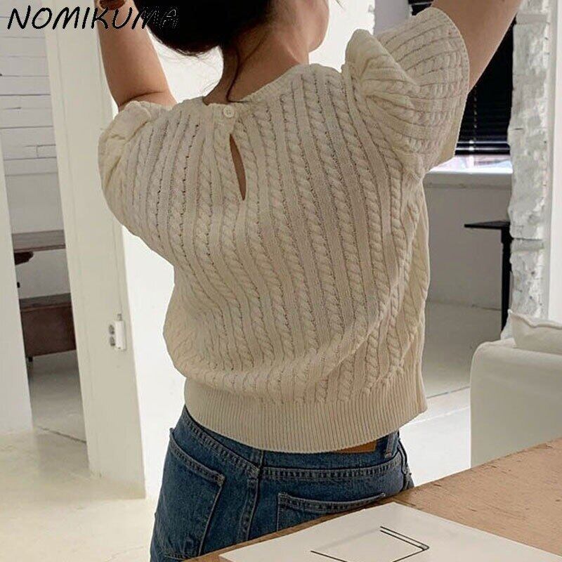 Nomikuma 薄いツイスト半袖プルオーバーニット因果 O ネック女性セーター 2022 夏甘いニットトップ ショート ハーフスリーブ 大人ガーリー スウィート キュート カジュアル サマー 夏物 Oネック kor81266140116