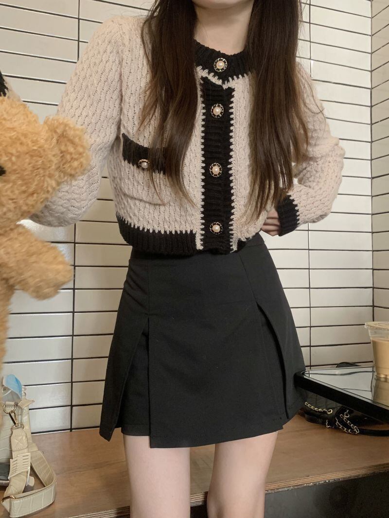 草引ツイストコントラストカラーセーターコート女性秋 2022 ショートカーディガン長袖 O ネックニットトップ ロング オータム 秋物 Oネック kor46164605479