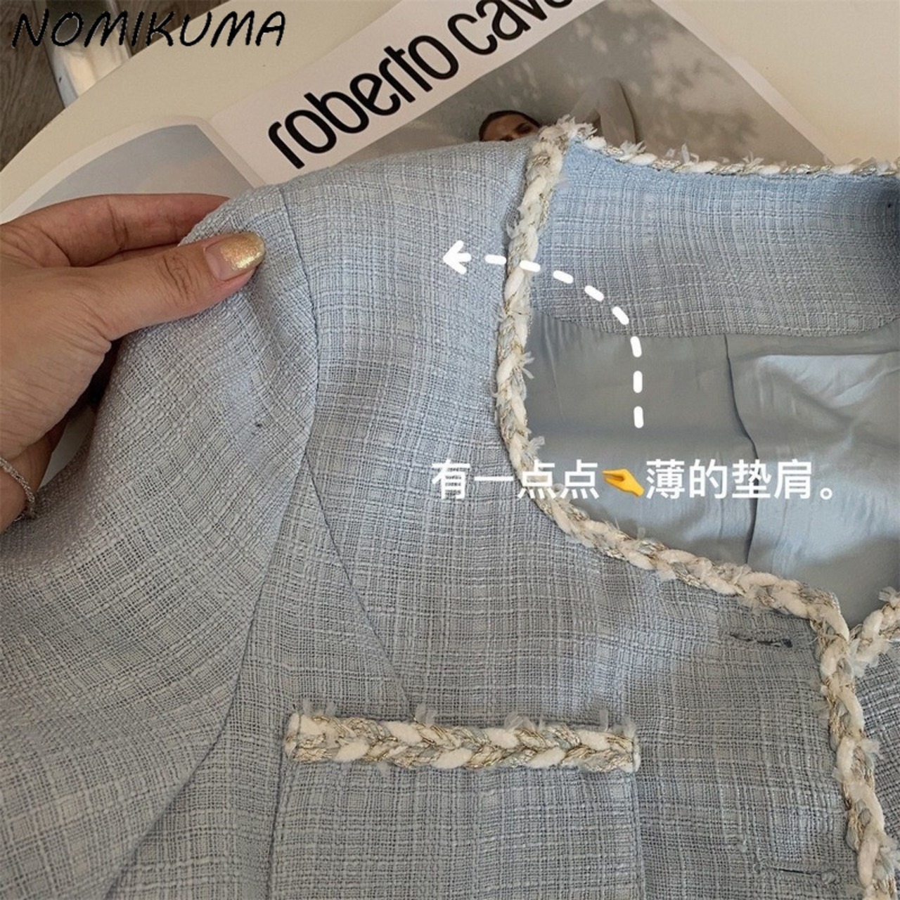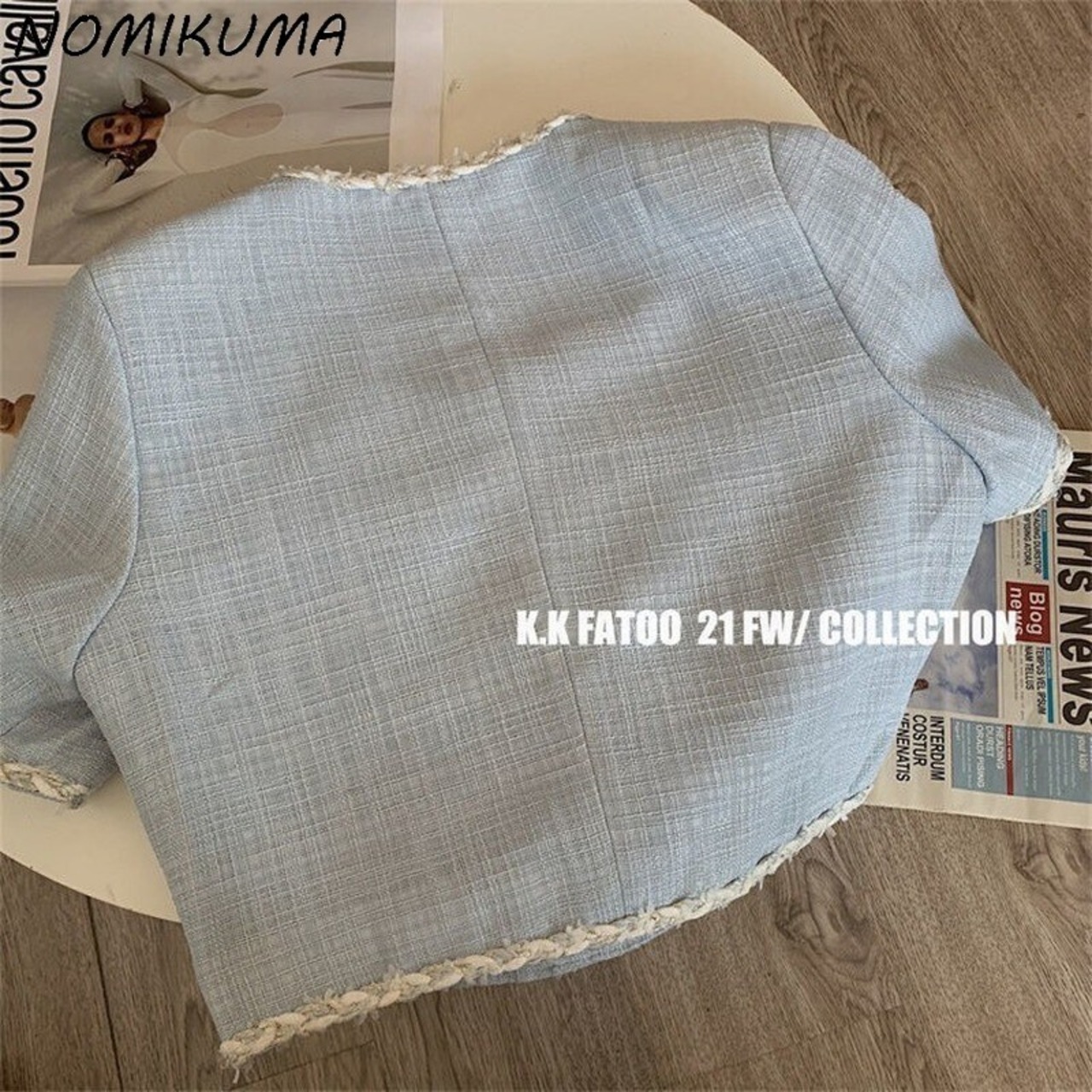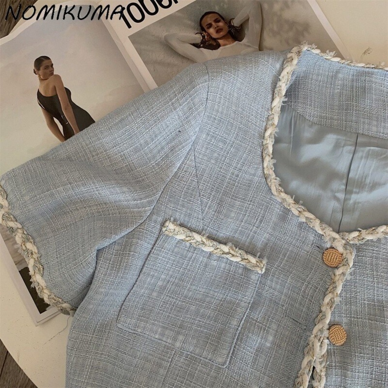 Nomikuma ショートシングルブレストツイードカーディガンコート女性 2022 夏スリーブ O ネック因果生き抜くトップス サマー 夏物 Oネック kor55178646037