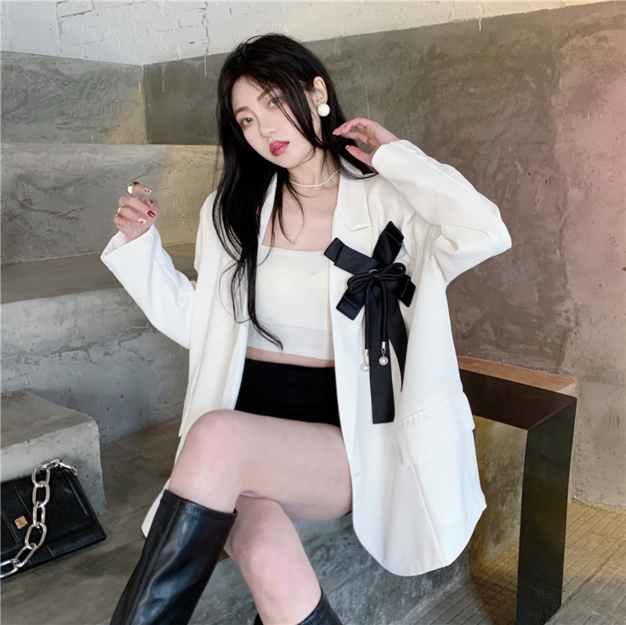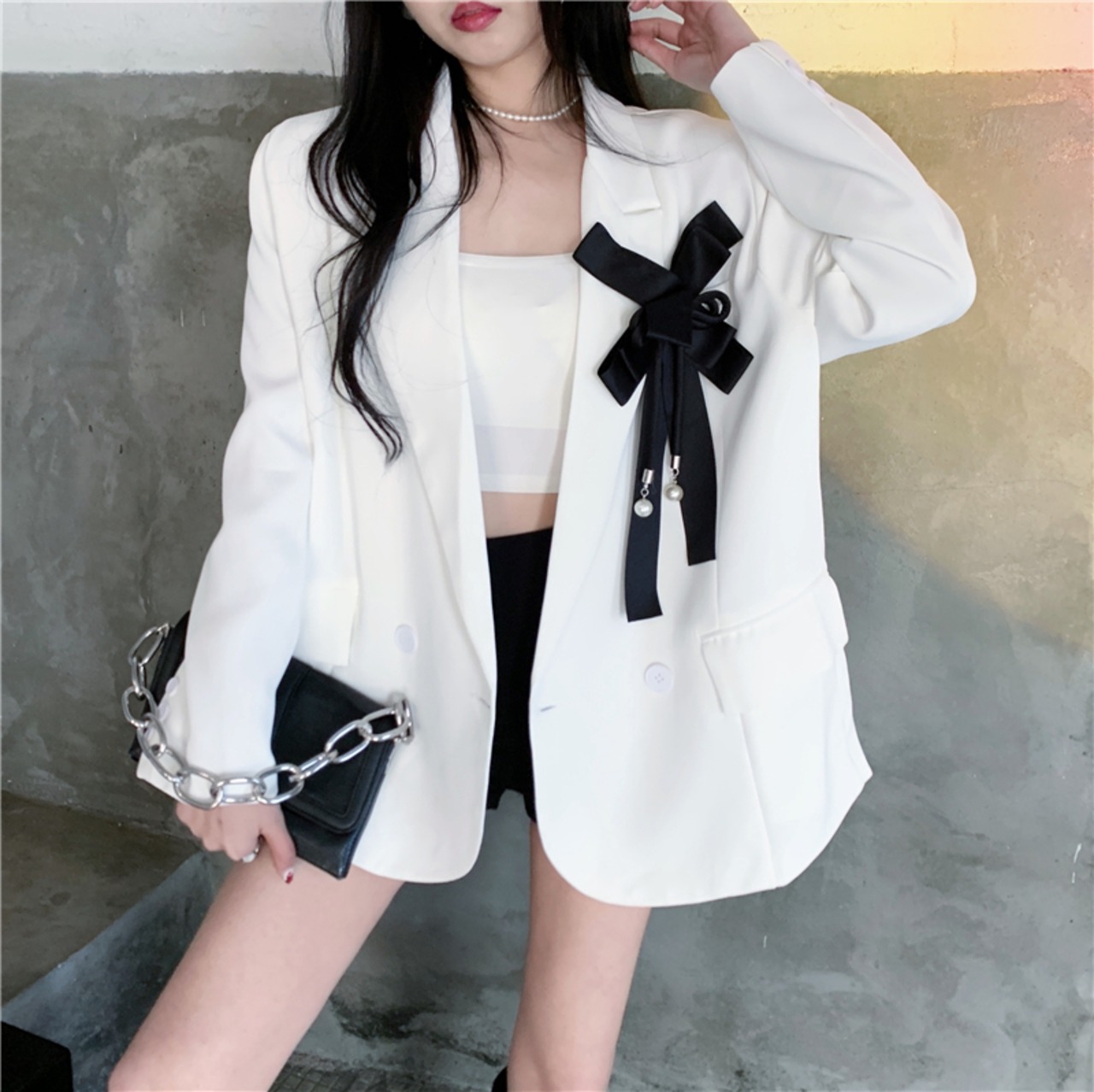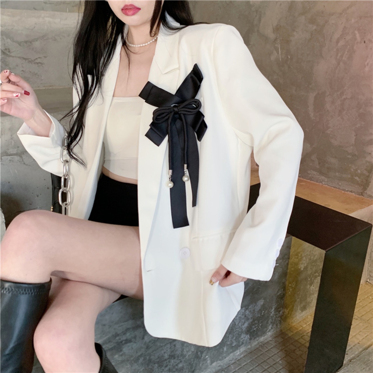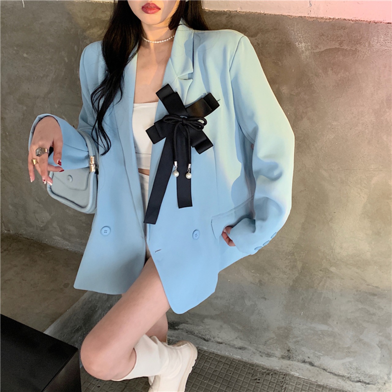 Nomikuma ブレザーコート女性春秋の因果スーツジャケットシックなちょう結びターンダウン襟ダブルブレストブレザー リボン スプリング 春物 オータム 秋物 kor51505844878