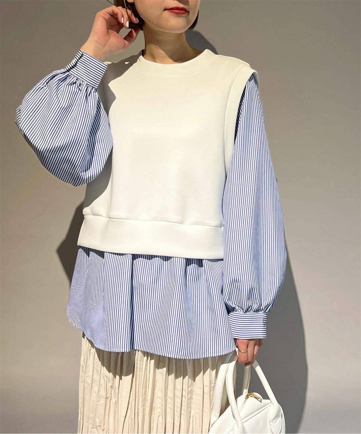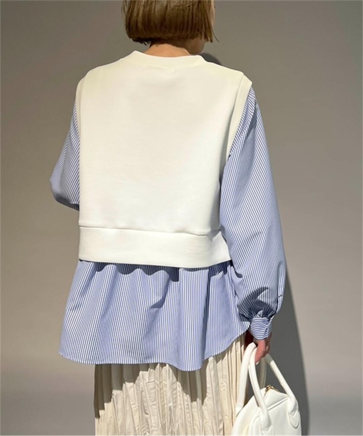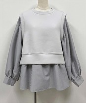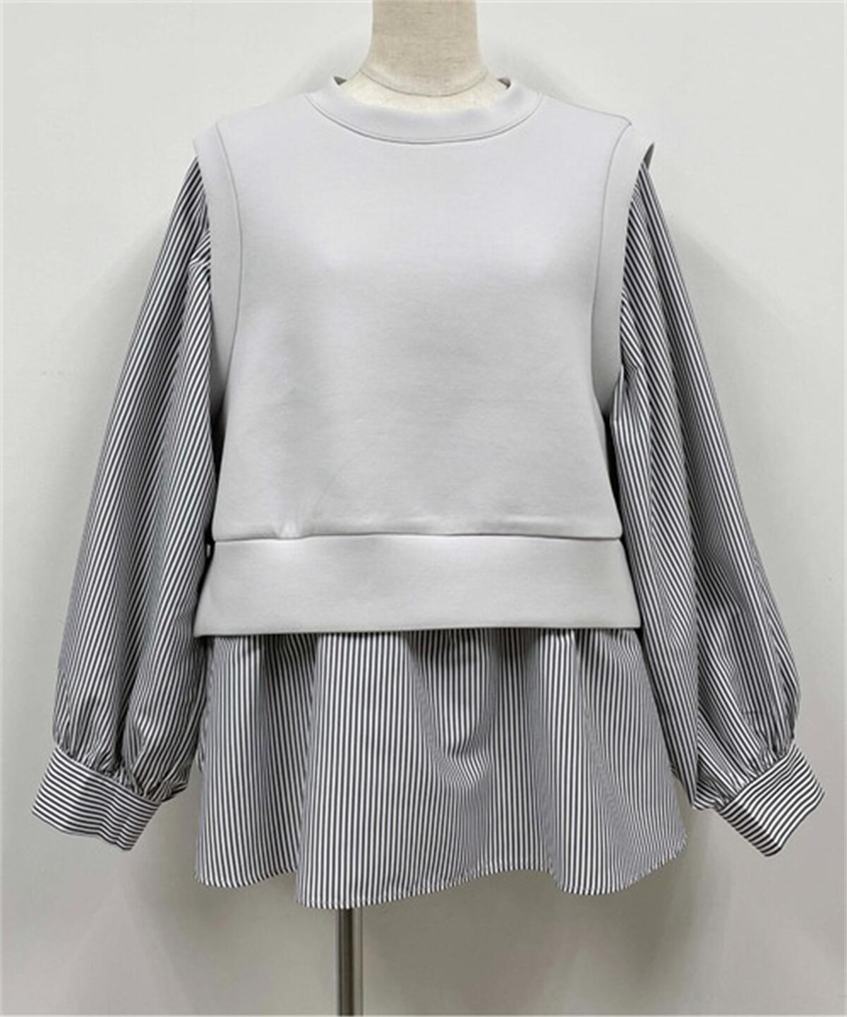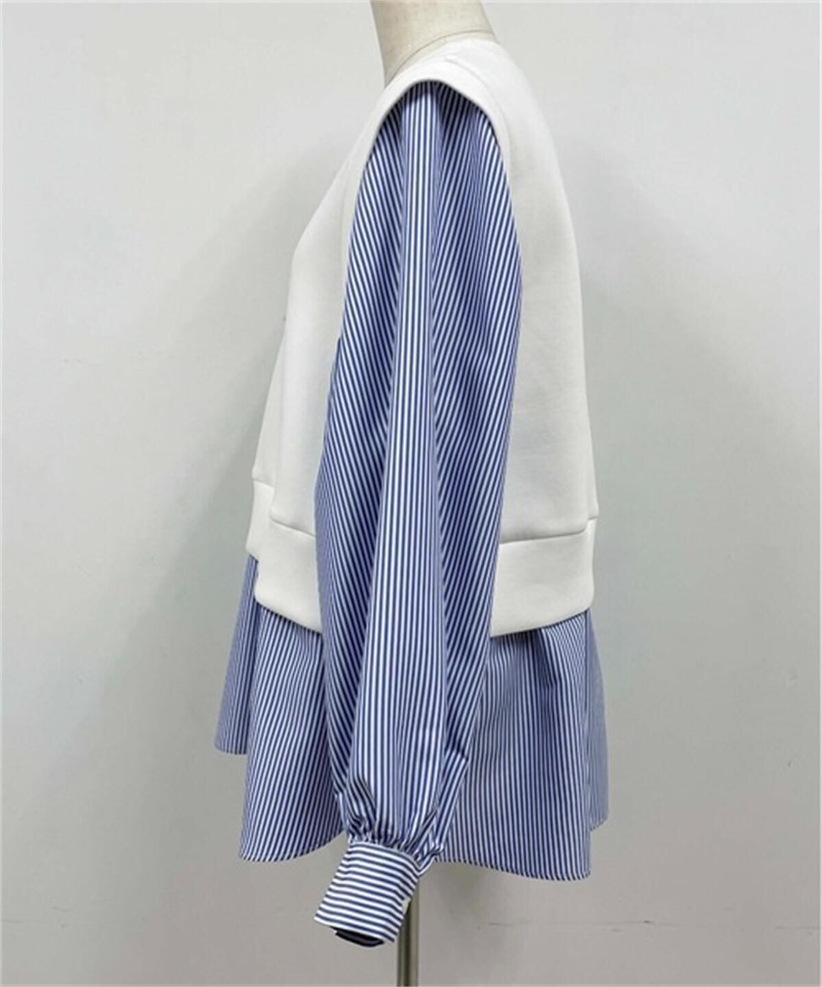 ノミクマ フェイクツーピース レディース トップス ストライプ パッチワーク ブラウス シャツ 2022 秋 De Moda 2022 Verano オータム 秋物 kor43754221853