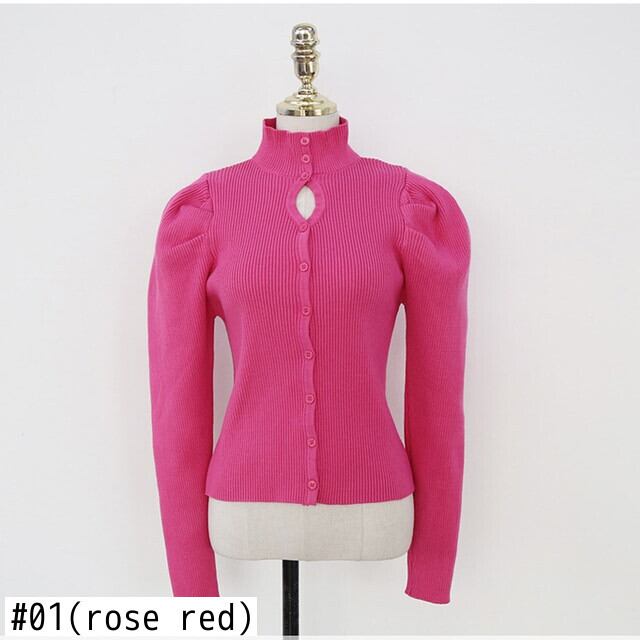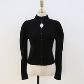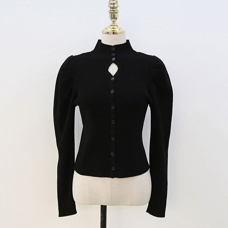 KUSAHIKI シックな秋ニットカーディガンパフスリーブシングルブレストタートルネックセクシー中空アウトセーターコート オータム 秋物 kor47376312248