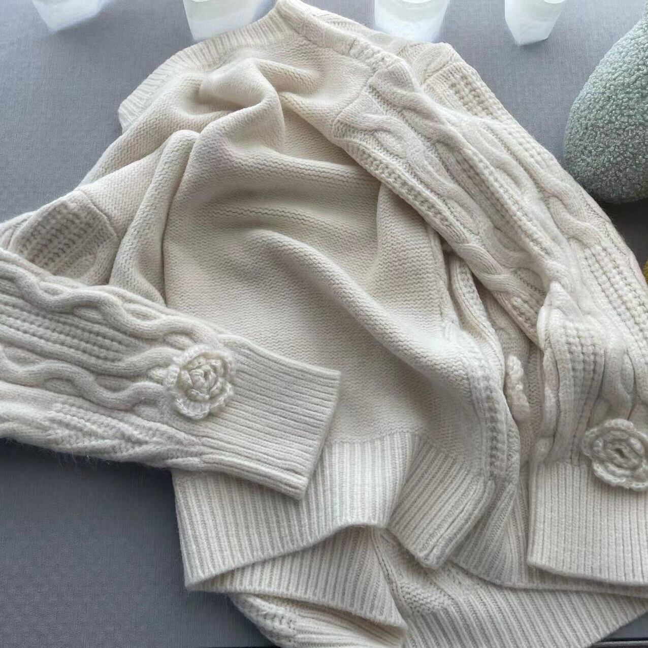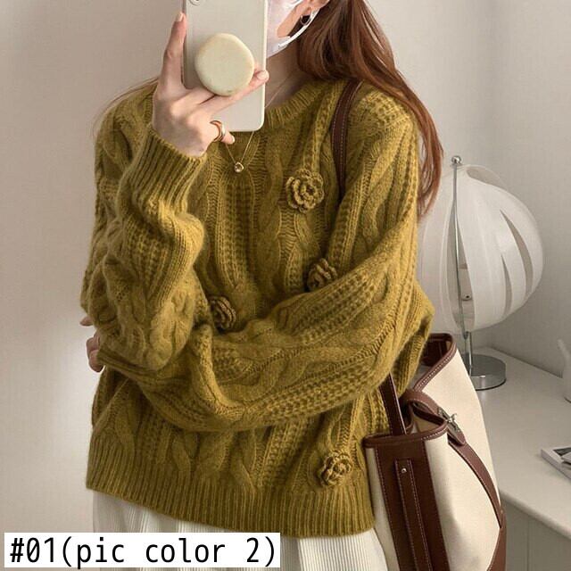 Nomikuma 3D 花女性セーター長袖 O ネックプルオーバーニット 2022 秋冬ニットプル ロング オータム 秋物 ウィンター 冬物 Oネック フラワーデザイン kor29116174113
