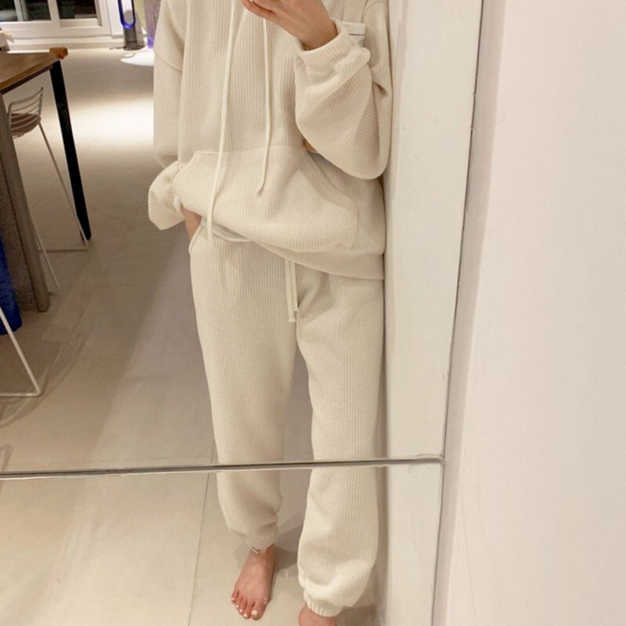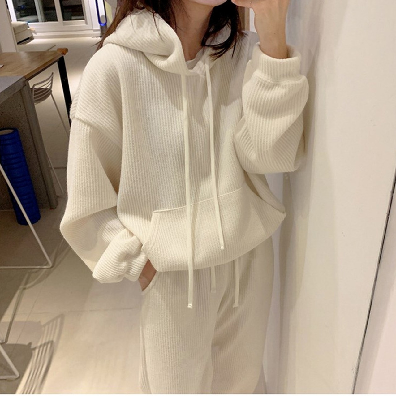 Nomikuma 秋の因果女性トレーナーパンツセット長袖巾着フード付きパーカー + レースアップウエストハーレム 6Z515 ロング オータム 秋物 kor59634653601