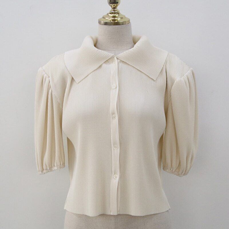 Nomikuma 女性ブラウスパフ半袖ターンダウンカラーシャツ 2021 春夏因果デ 6F610 ショート ハーフスリーブ スプリング 春物 サマー 夏物 kor63590202866