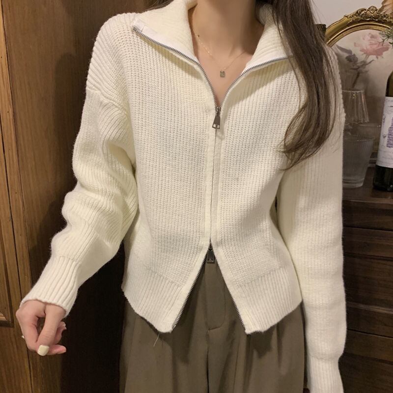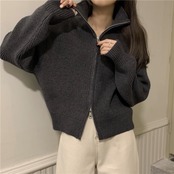 Nomikuma スタイルジッパースタンドネック野球トレーナーセーターコート因果長袖 2022 秋ニットカーディガン女性 ロング オータム 秋物 kor66666465178