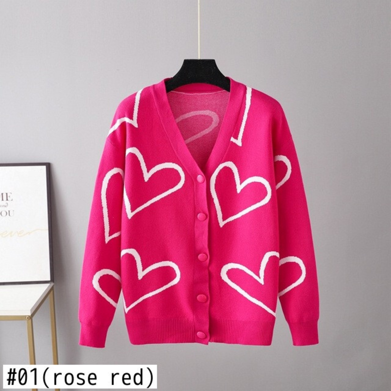 Nomikuma 2022 秋冬 セーターコート ラブハート ニットカーディガン カジュアル 長袖 Vネック ニット トップス ロング オータム 秋物 ウィンター 冬物 kor91013061606