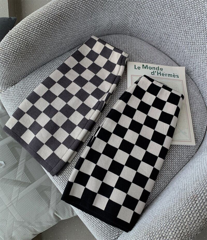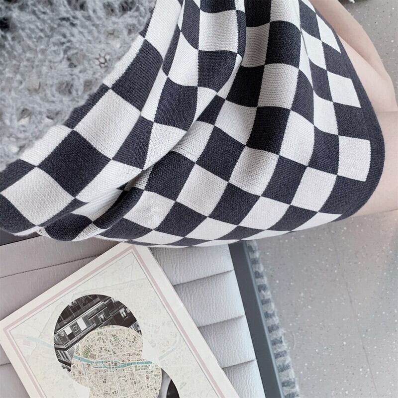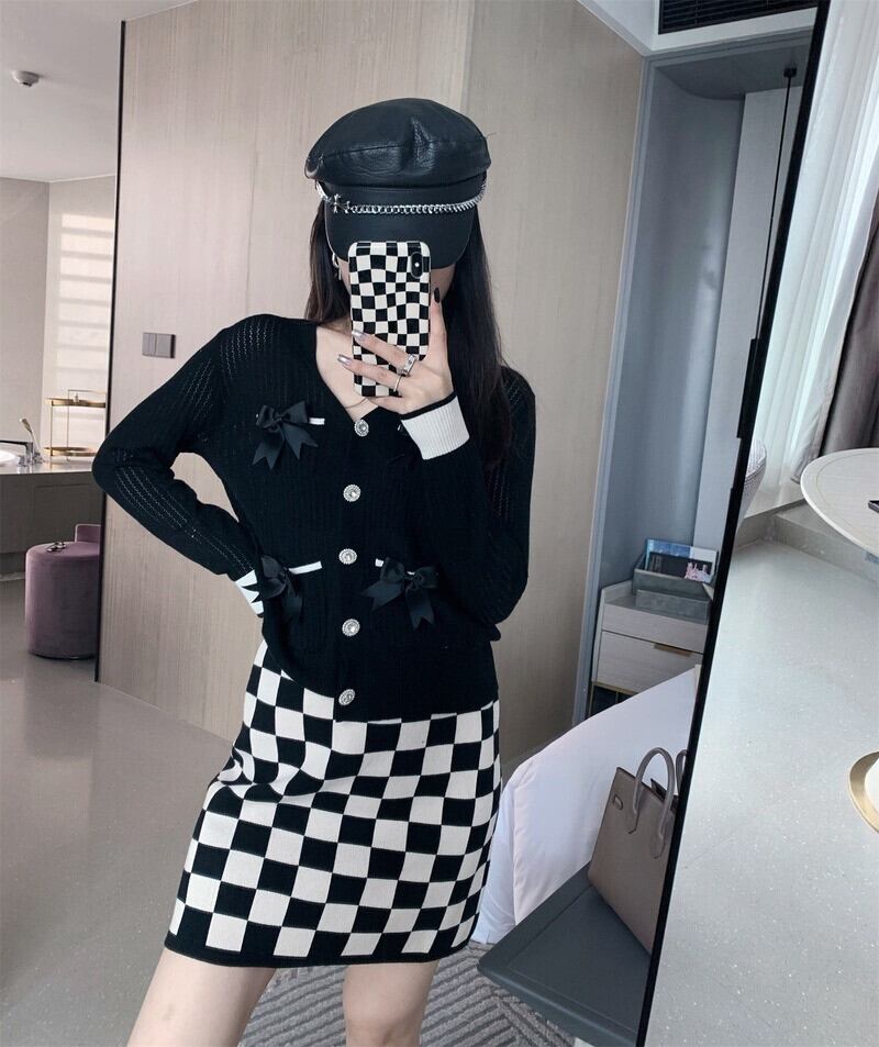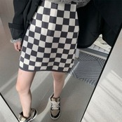 Nomikuma Balck 白チェック柄ニットスカート女性秋 2022 ウエストスリム A ラインミニセータースカート段 Faldas モーダ ホワイト オータム 秋物 Aライン kor46993984786