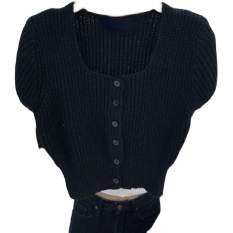 ノミクマスクエアカラー半袖ニットカーディガン女性 2022 サマーセーター因果ニットコート ショート ハーフスリーブ 夏物 kor91369049024