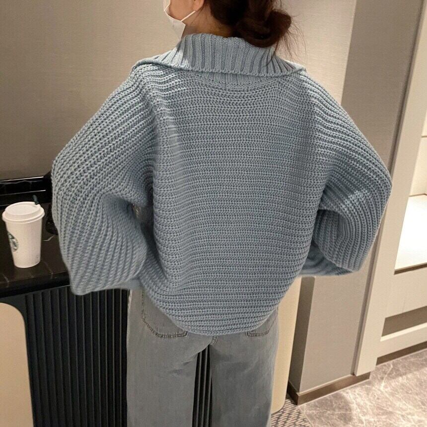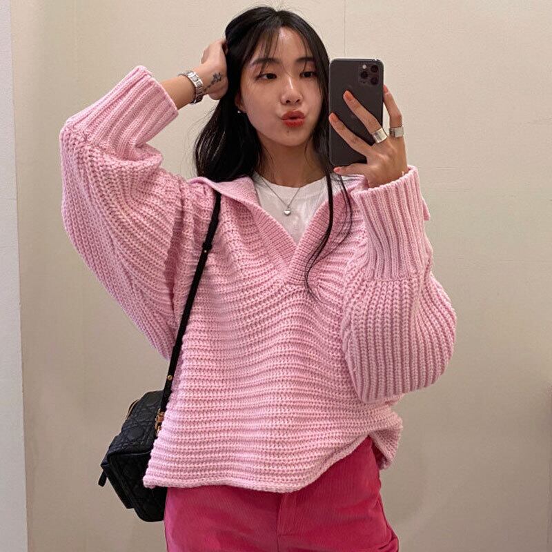 Nomikumaプルシックな秋冬因果ターンダウン襟ニットセーター女性無地長袖ニット ロング オータム 秋物 ウィンター 冬物 ソリッドカラー kor4239788272
