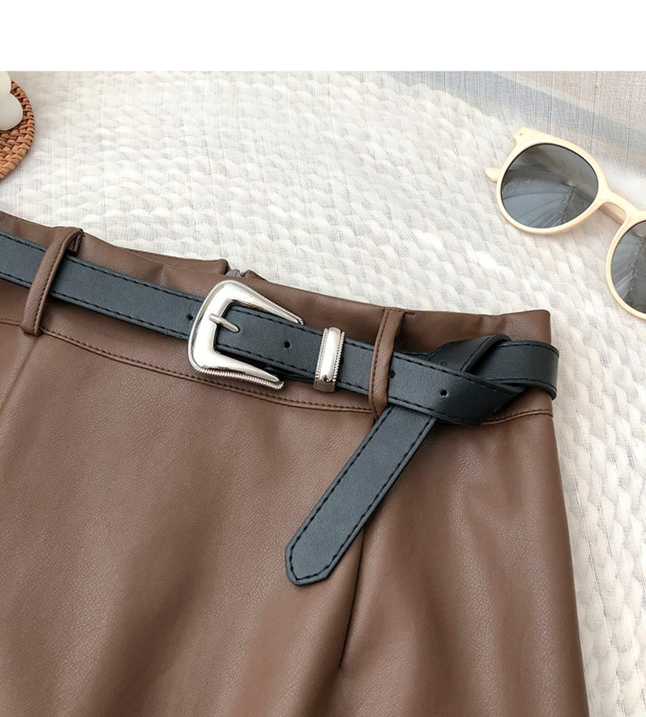 Nomikuma PU レザー ウエスト A ライン スカート ベルト付き女性 2022 秋冬スカート 段 Faldas Moda オータム 秋物 ウィンター 冬物 ハーネス Aライン kor51174707951