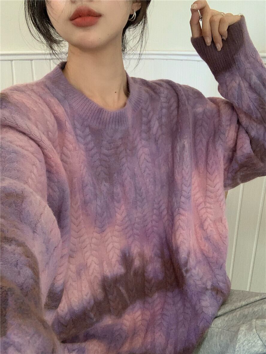 Nomikuma プル因果絞り染めツイストプルオーバーセーター長袖 O ネック秋冬女性ニットトップス 6C196 ロング オータム 秋物 ウィンター 冬物 Oネック kor42440663305