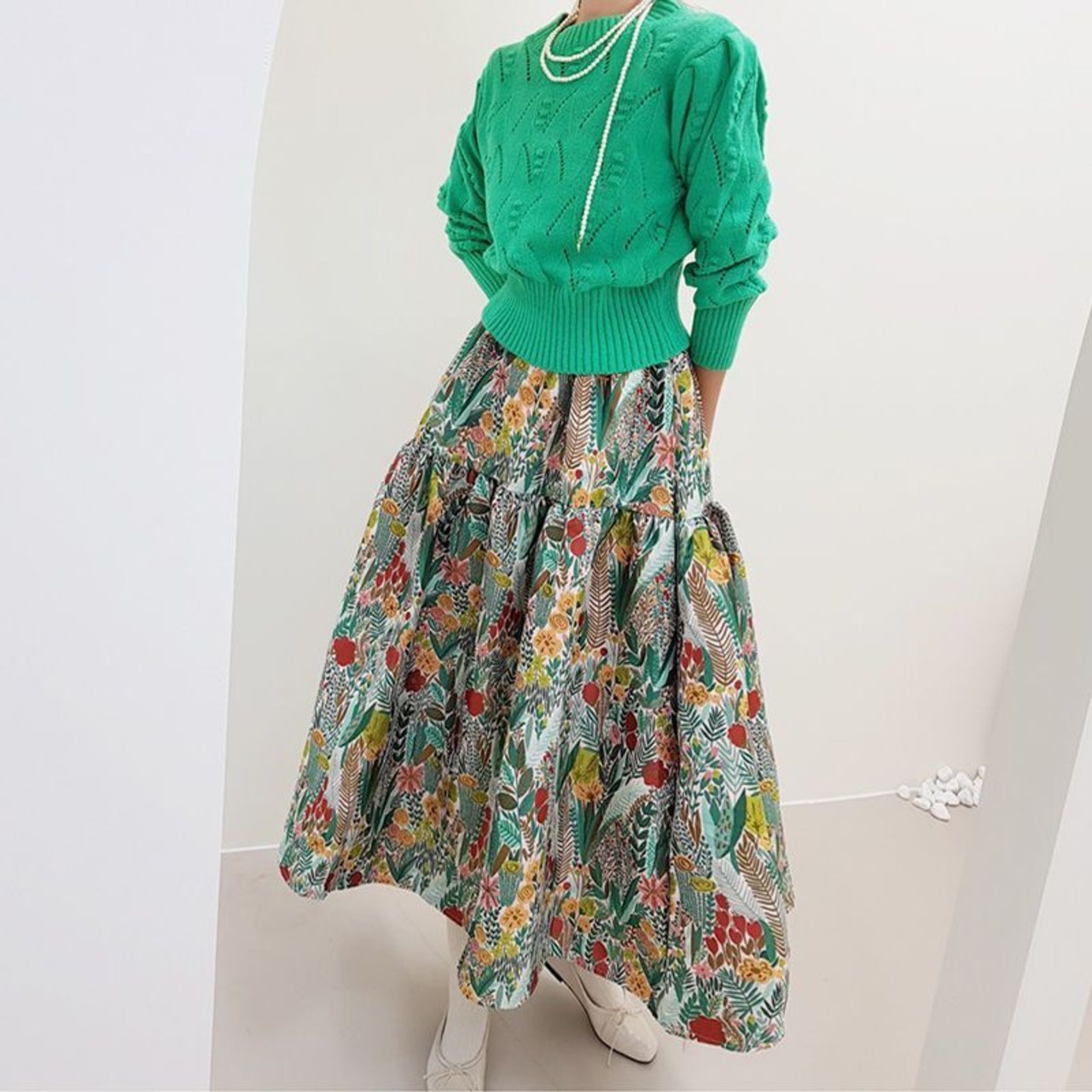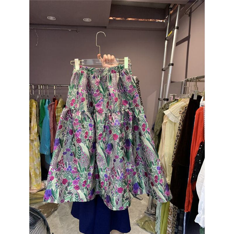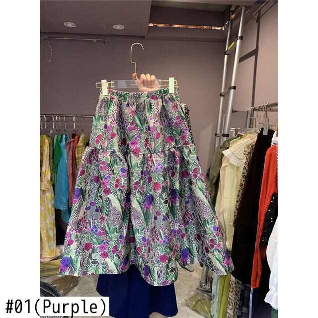 Nomikuma 2022 ジャカード因果 Skrits 女性秋弾性ウエスト A ラインスカート段 Faldas デ エラスティック 伸縮 オータム 秋物 Aライン kor17530311519