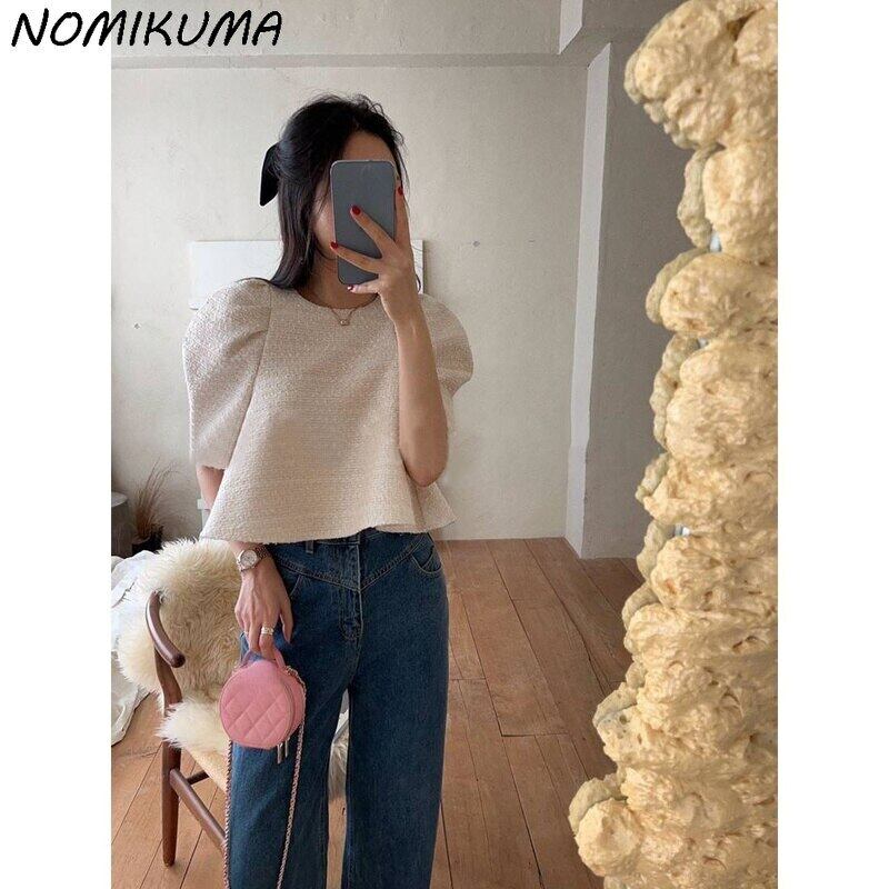 Nomikuma レディース トップス シック スウィート パフスリーブ ドールシャツ 因果無地 ブラウス 夏 2022 デ 大人ガーリー キュート カジュアル サマー 夏物 ソリッドカラー kor25449497119