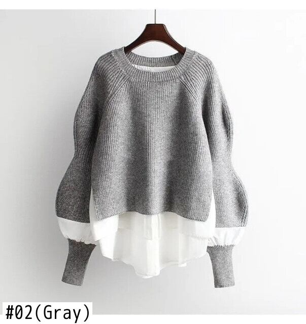 Nomikuma プル 2020 秋冬女性プルオーバーニットパッチワーク偽二枚ルーズニットセーター 6C625 オータム 秋物 ウィンター 冬物 kor96256143329