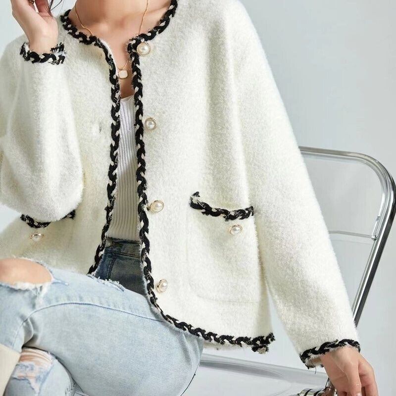 Nomikuma 2022 秋冬フェイクミンクカシミヤカーディガンコートヒットカラーロングルセヴェ長袖 O ネックジャケット生き抜くトップス オータム 秋物 ウィンター 冬物 ファー Oネック kor24874523088